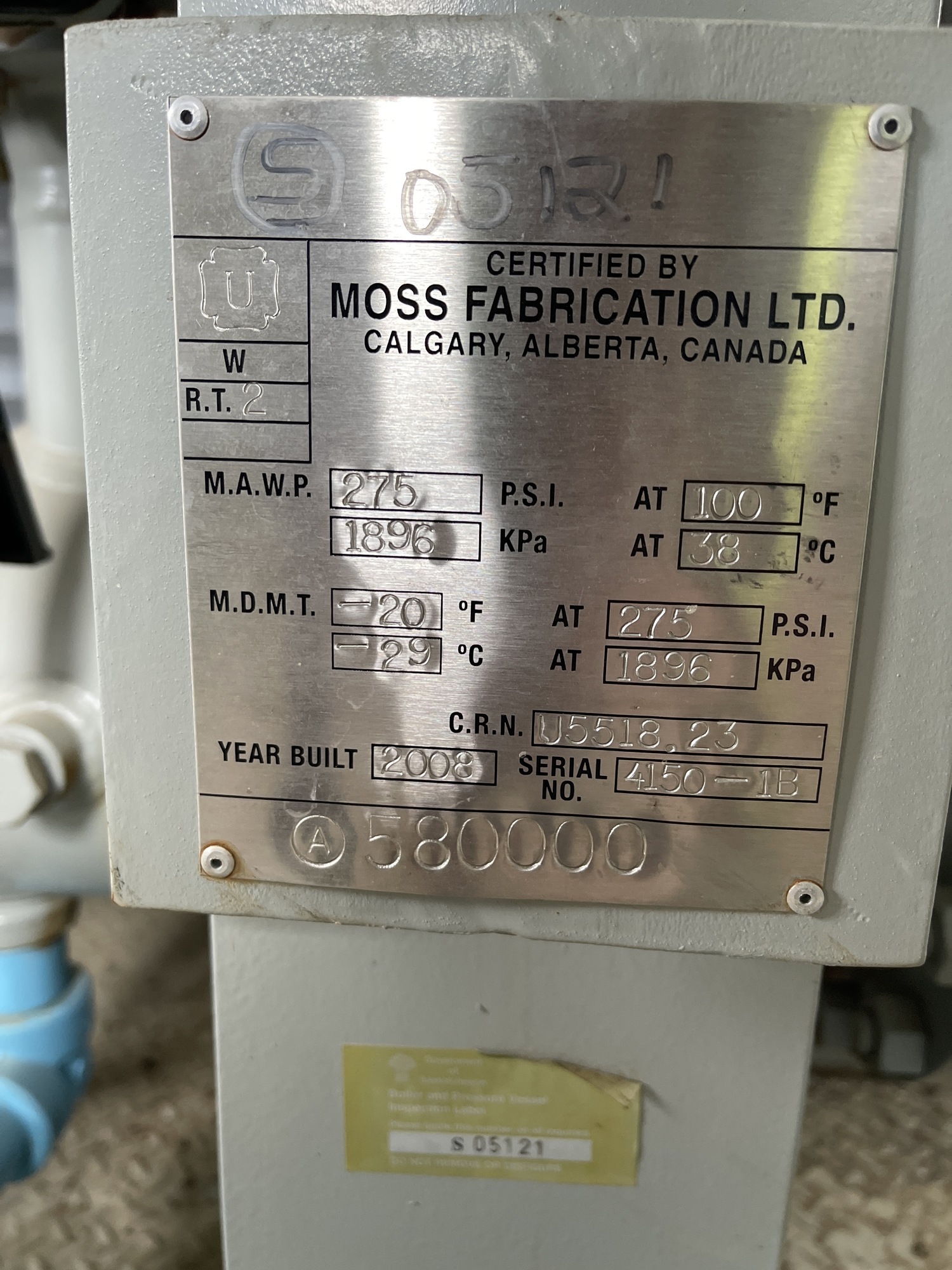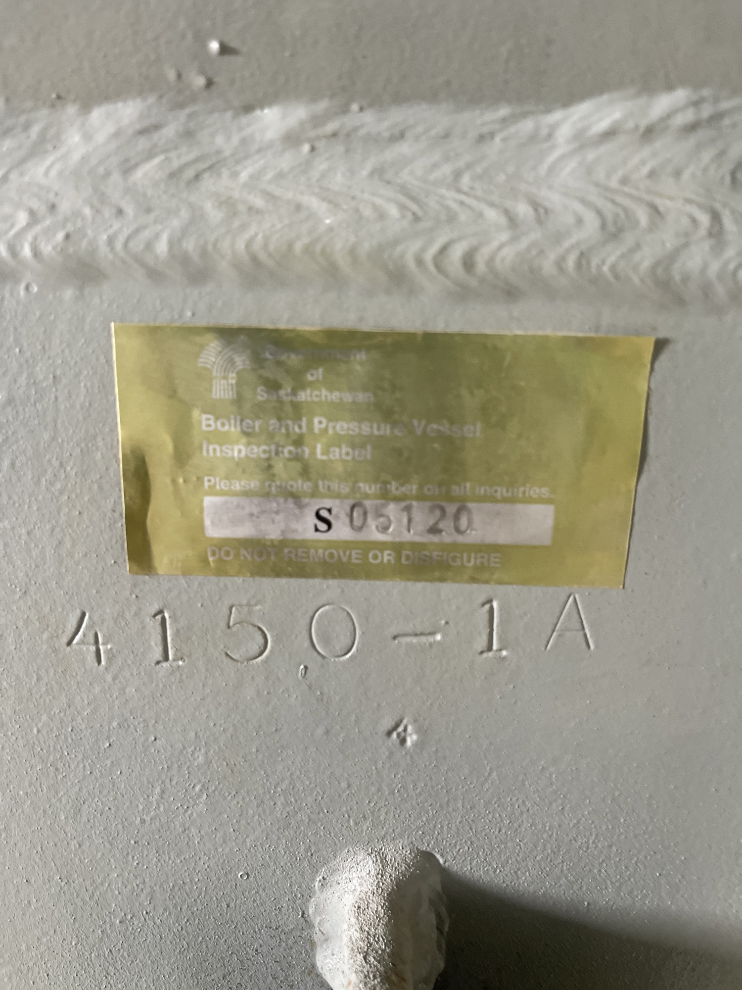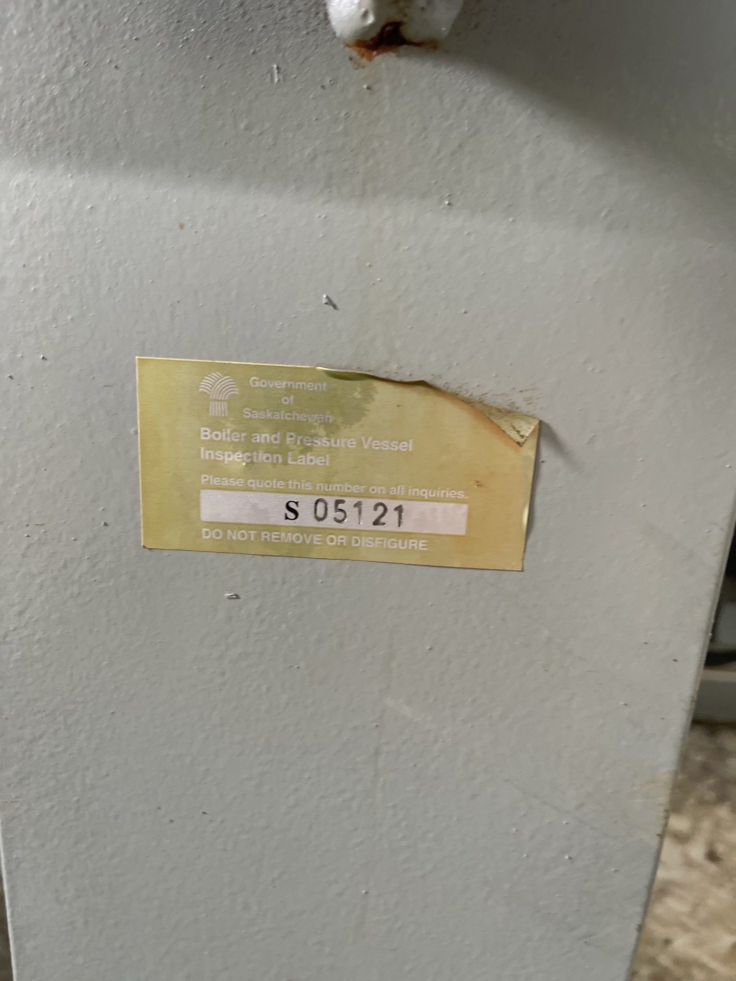 Boiler and Pressure Vessel Inspection Label: S05121