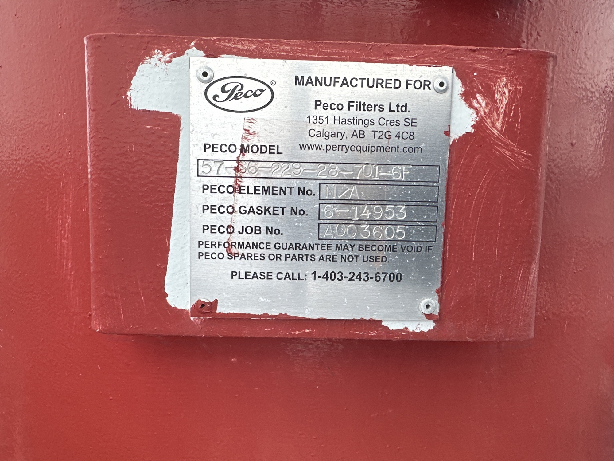 Filter Housing: Peco Model 57-66-229-28-701-6F