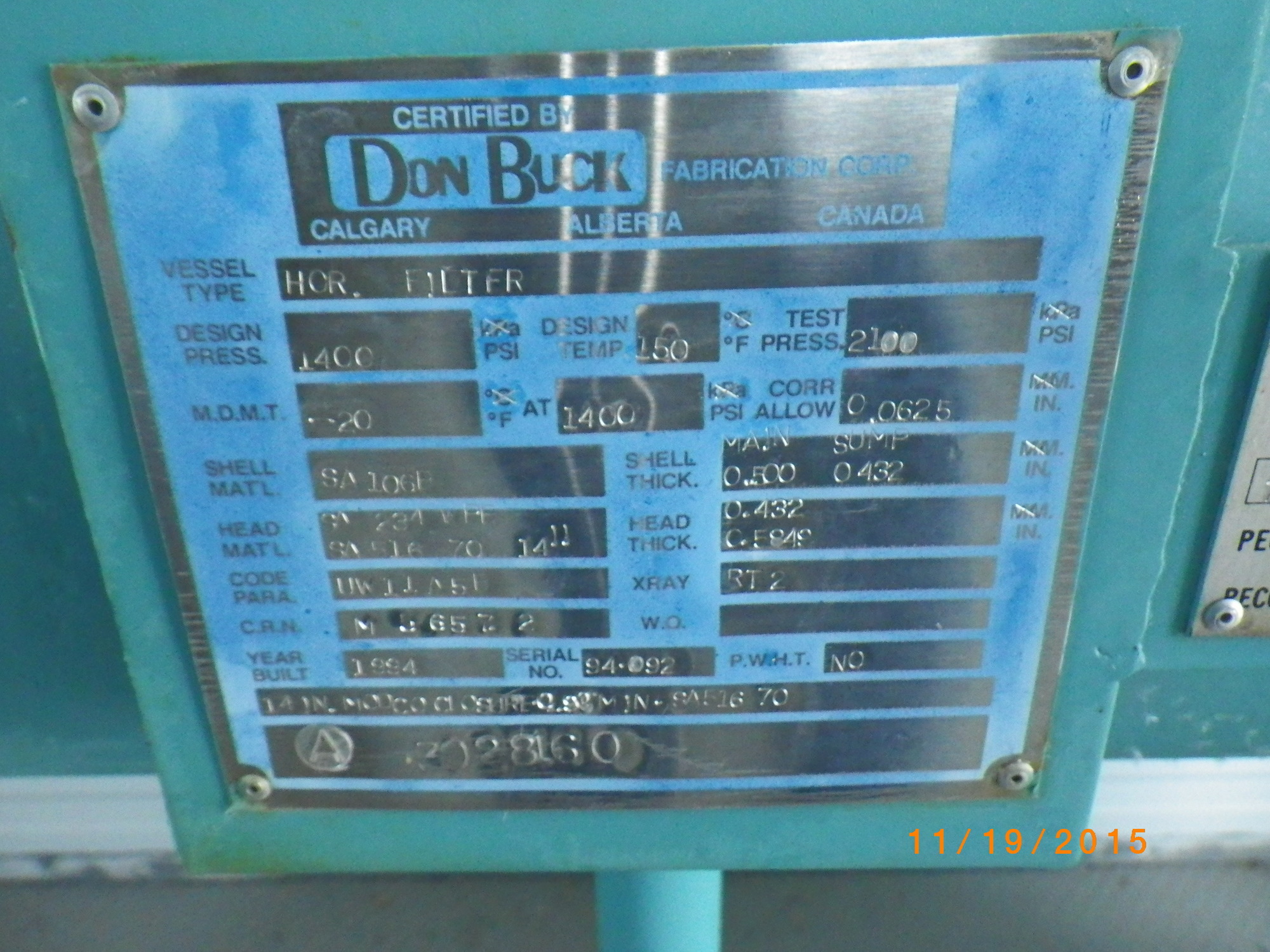 MAWP (PSI) 1400 PSI