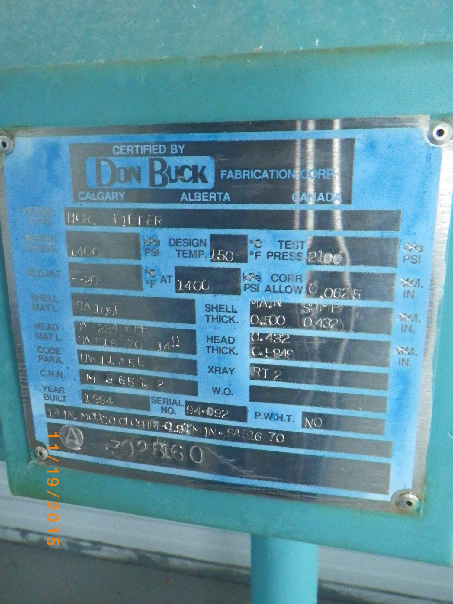 MAWP (kPa) 9653 kPa