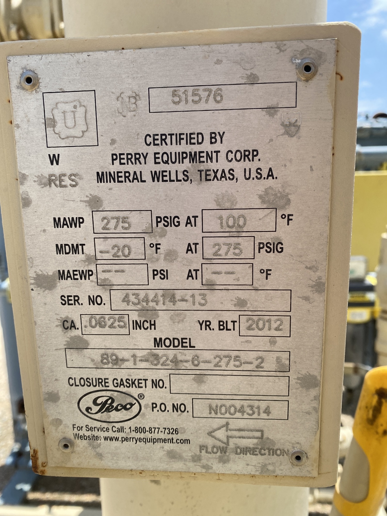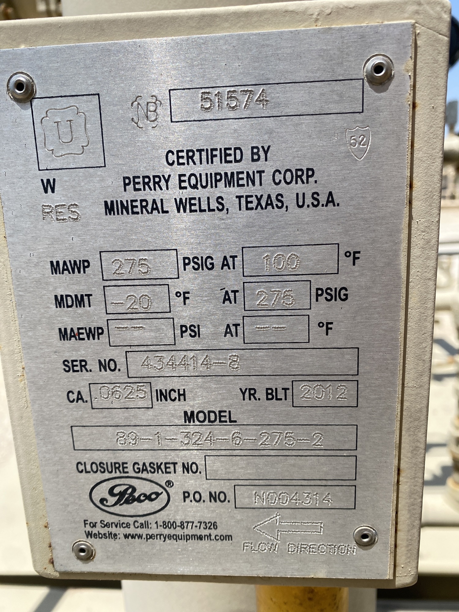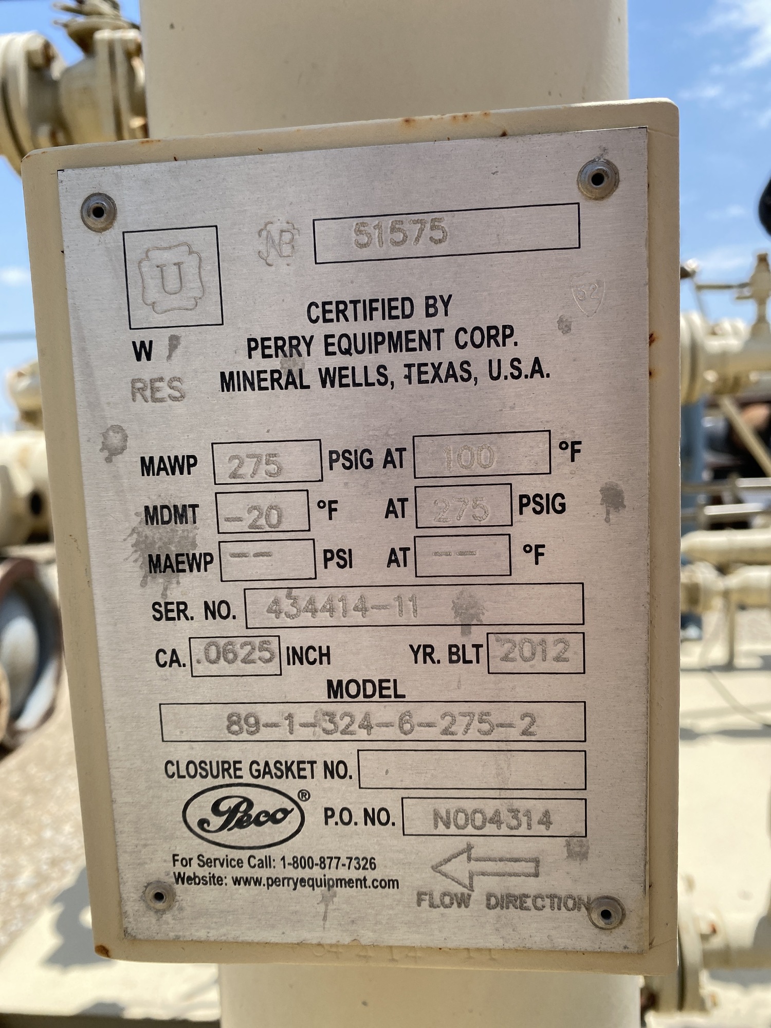 MAWP: 275 PSI at 100 F