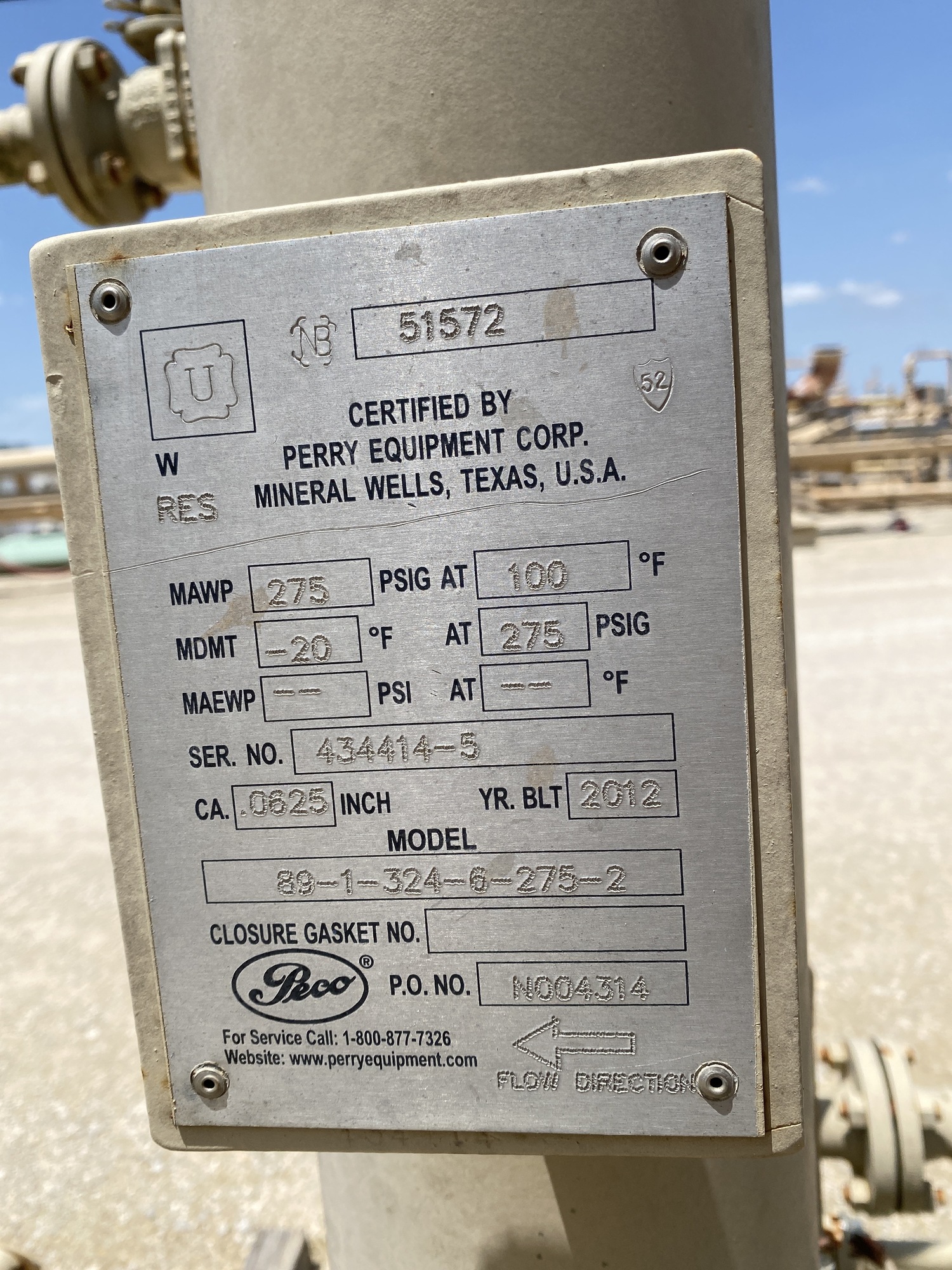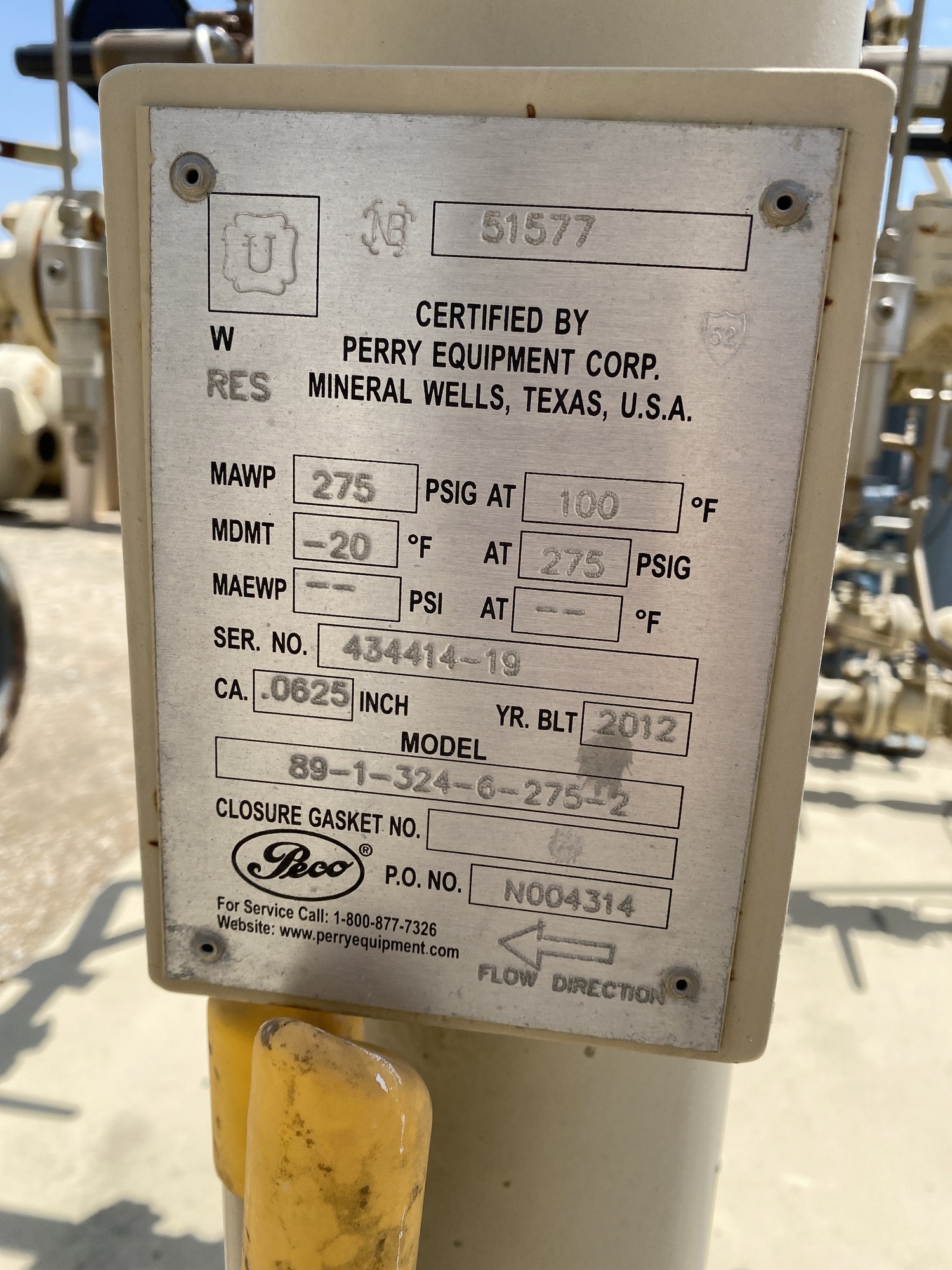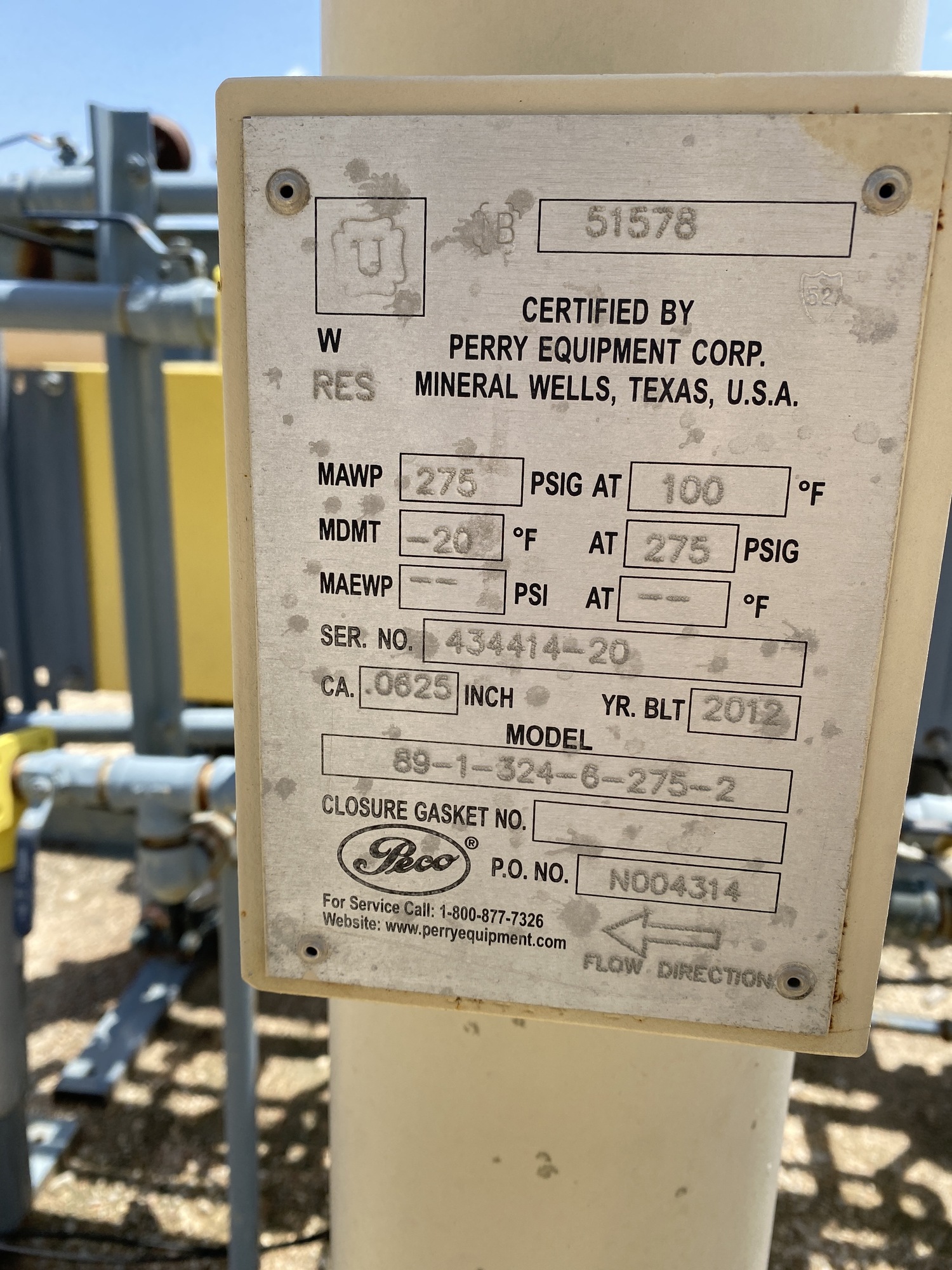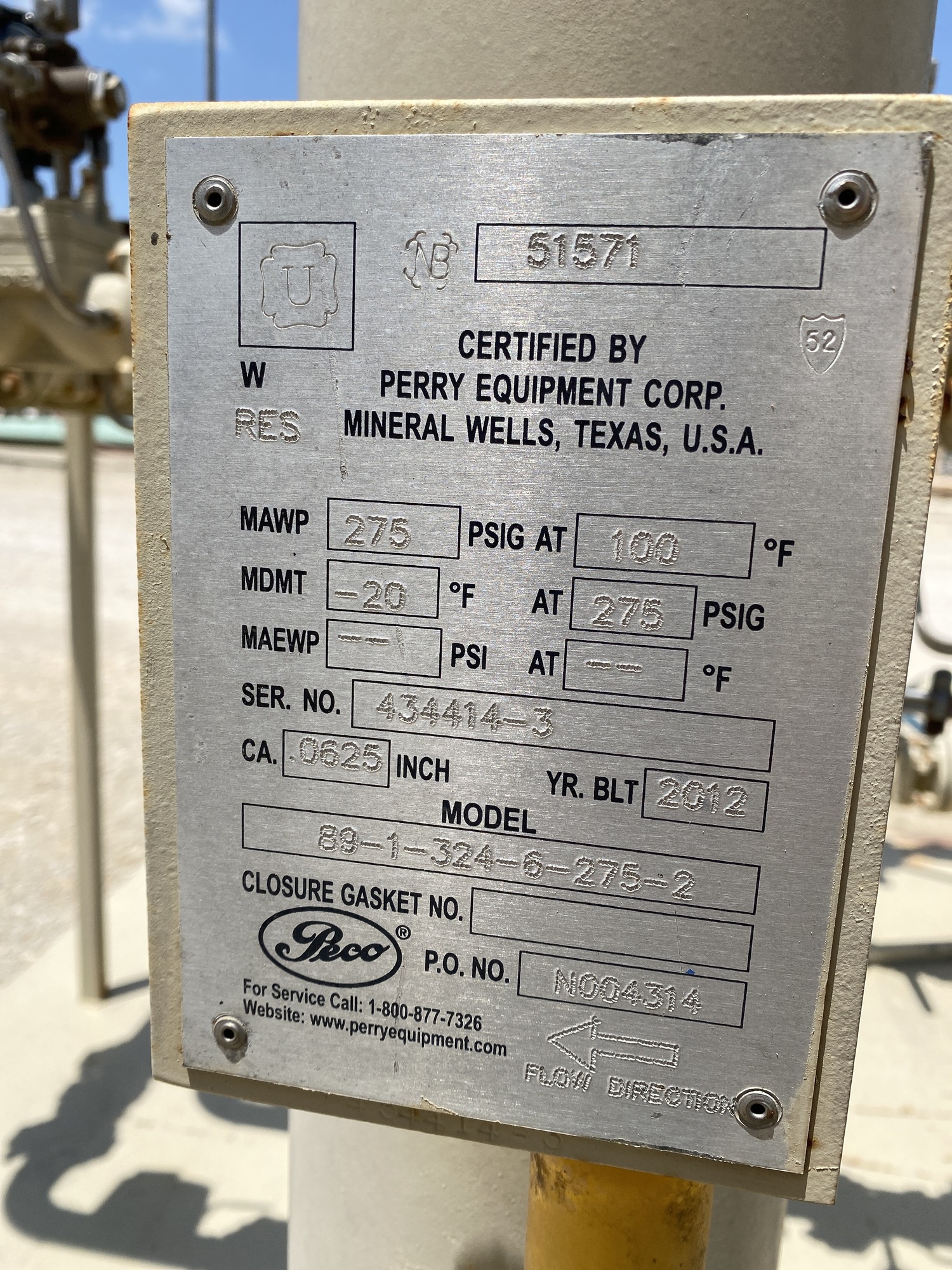 MAWP: 275 PSI at 100 F