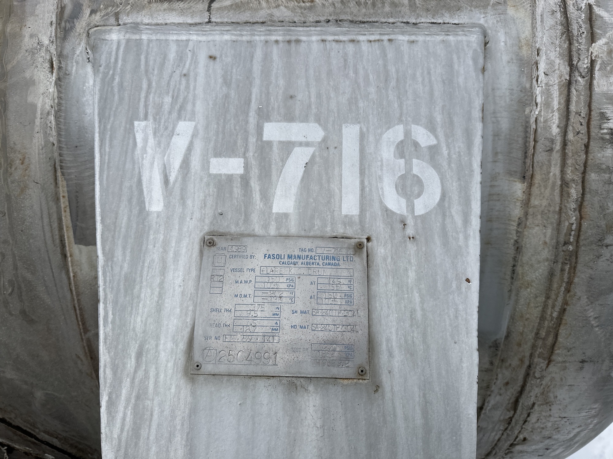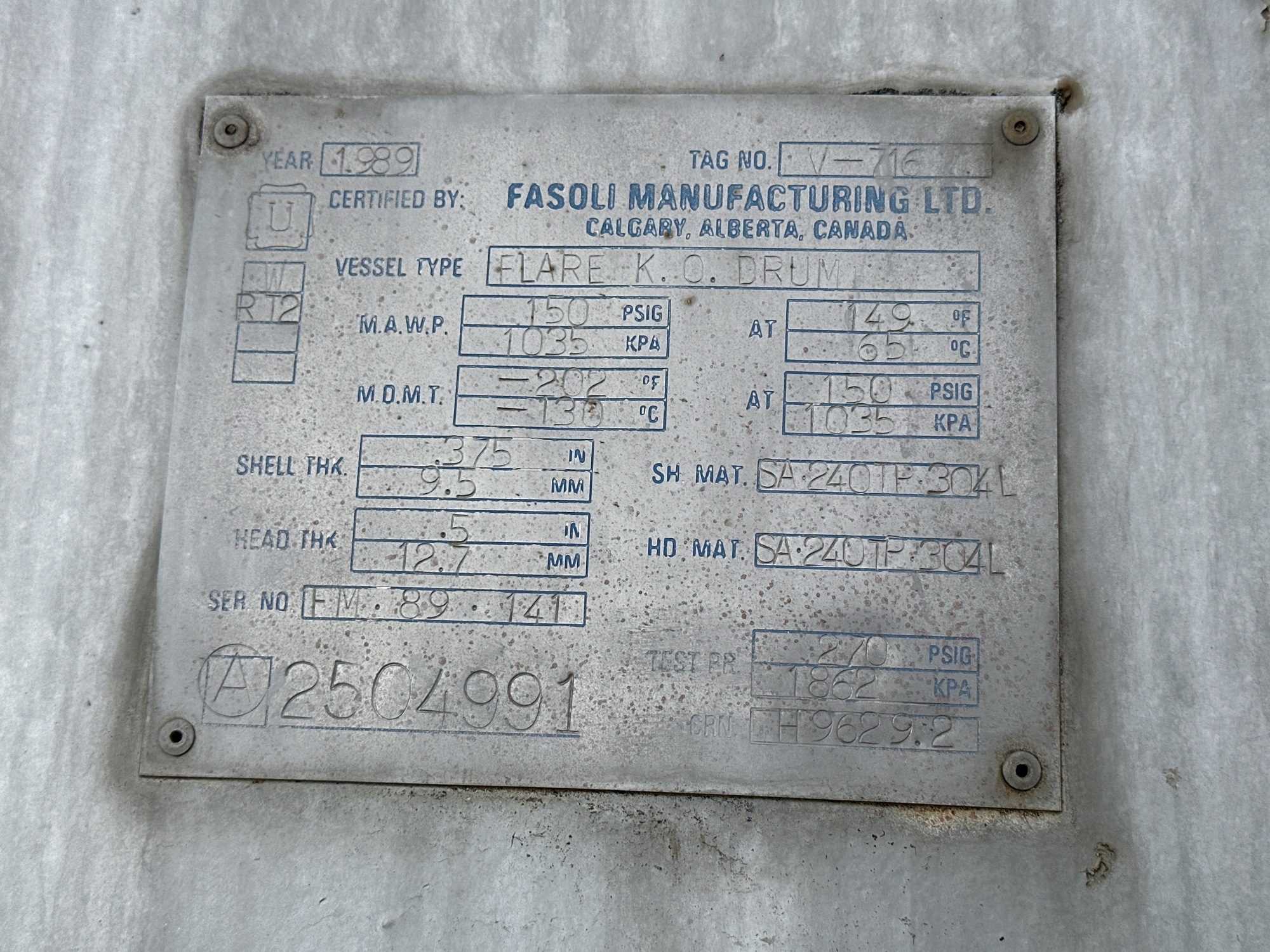 MAWP: 150 PSIG @ 149 F