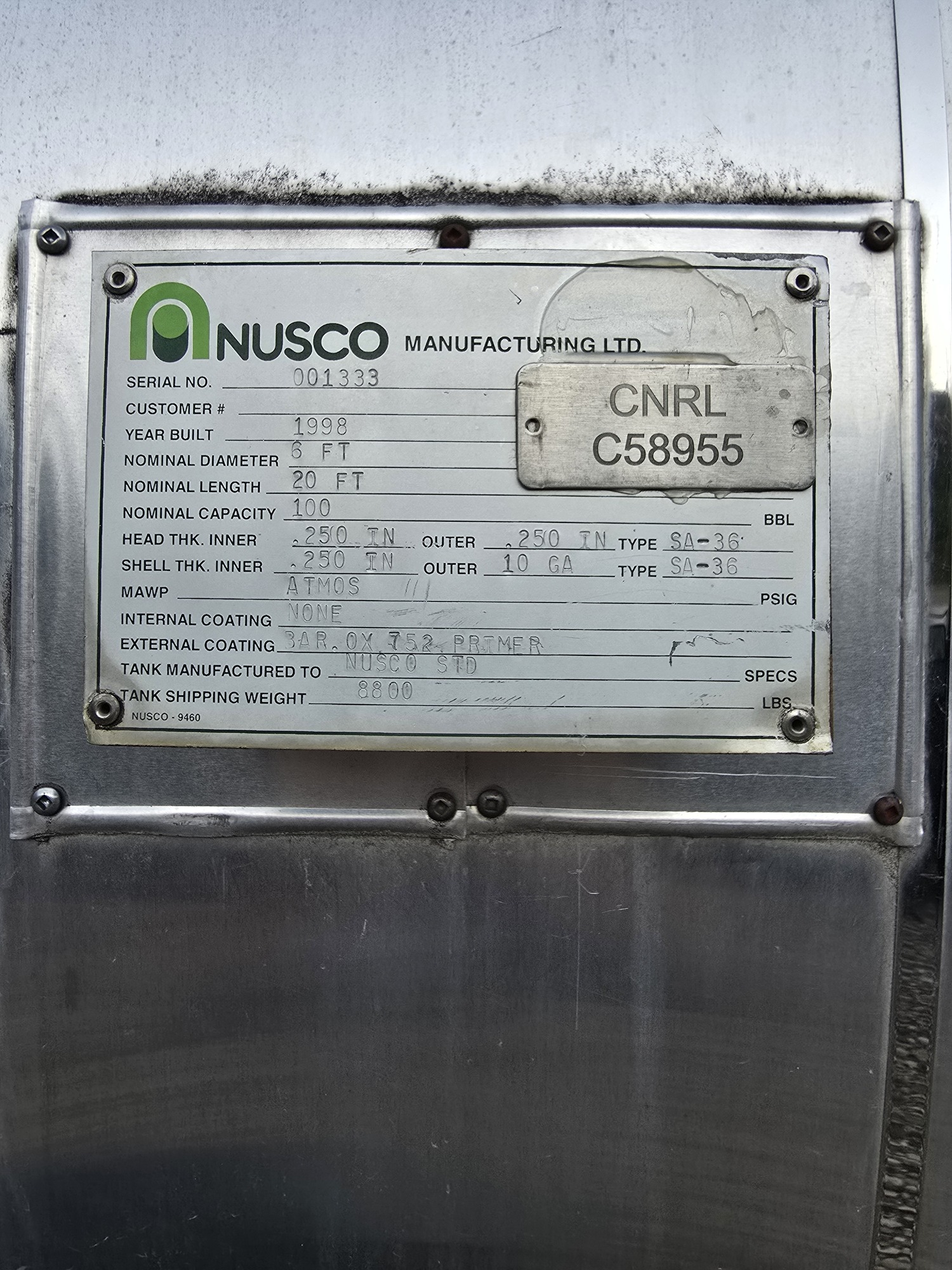 Capacity 100 BBL