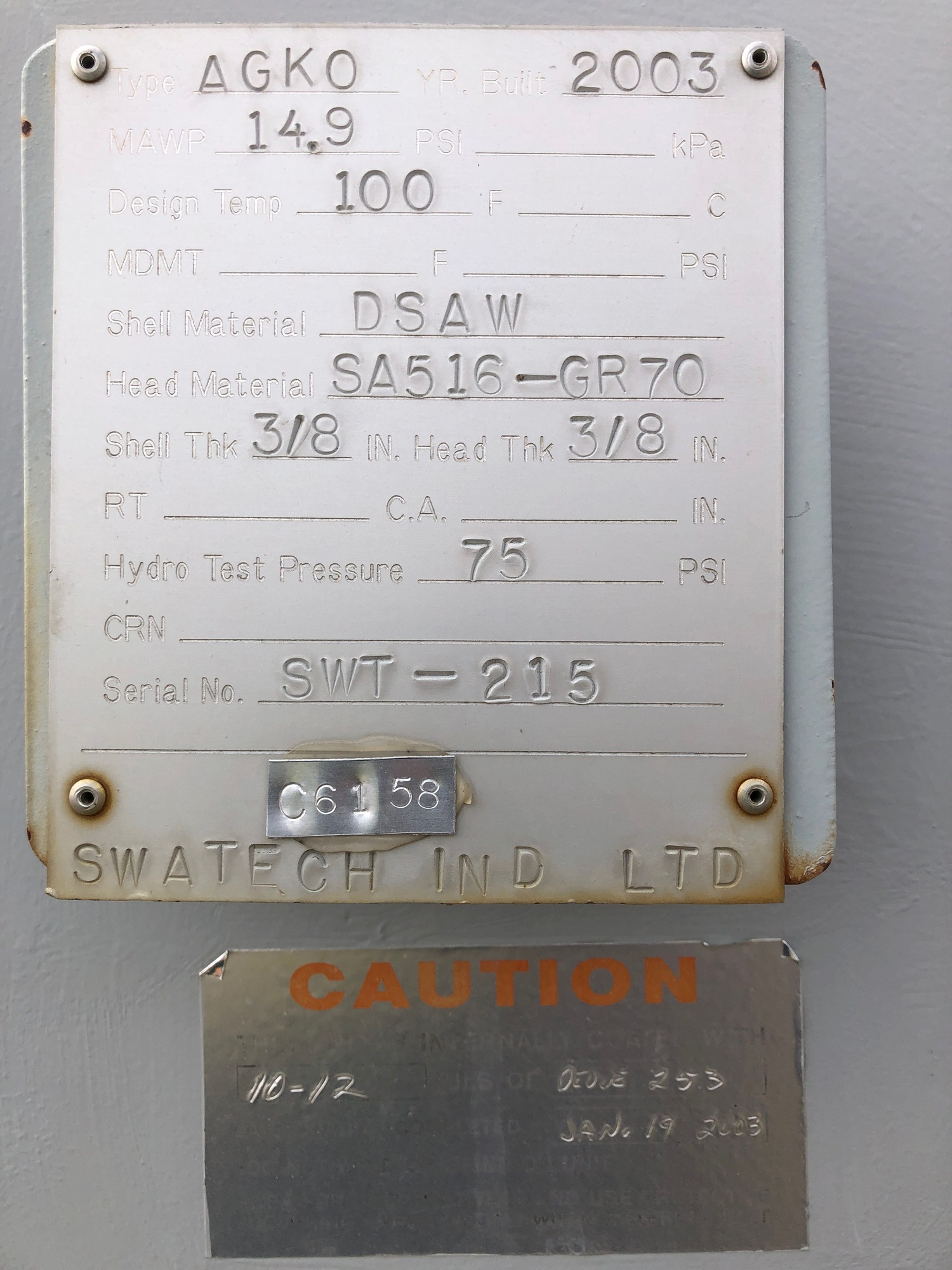 MAWP (PSI) 14