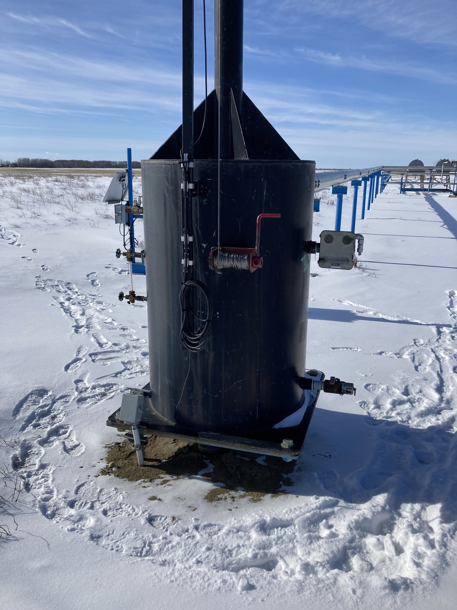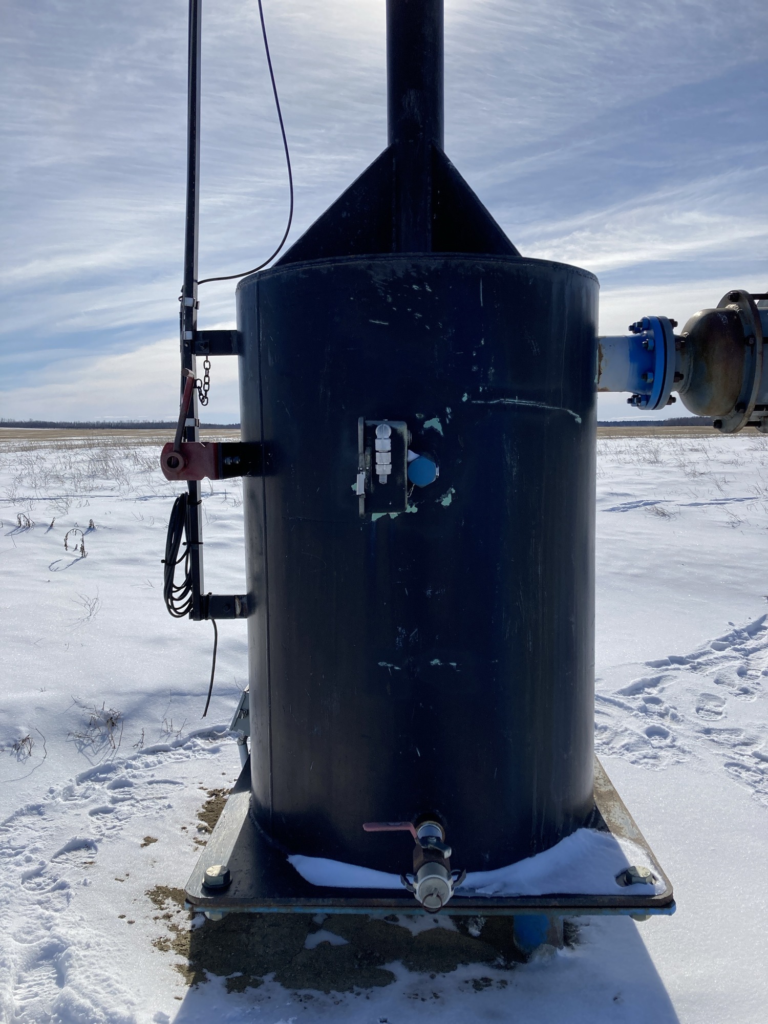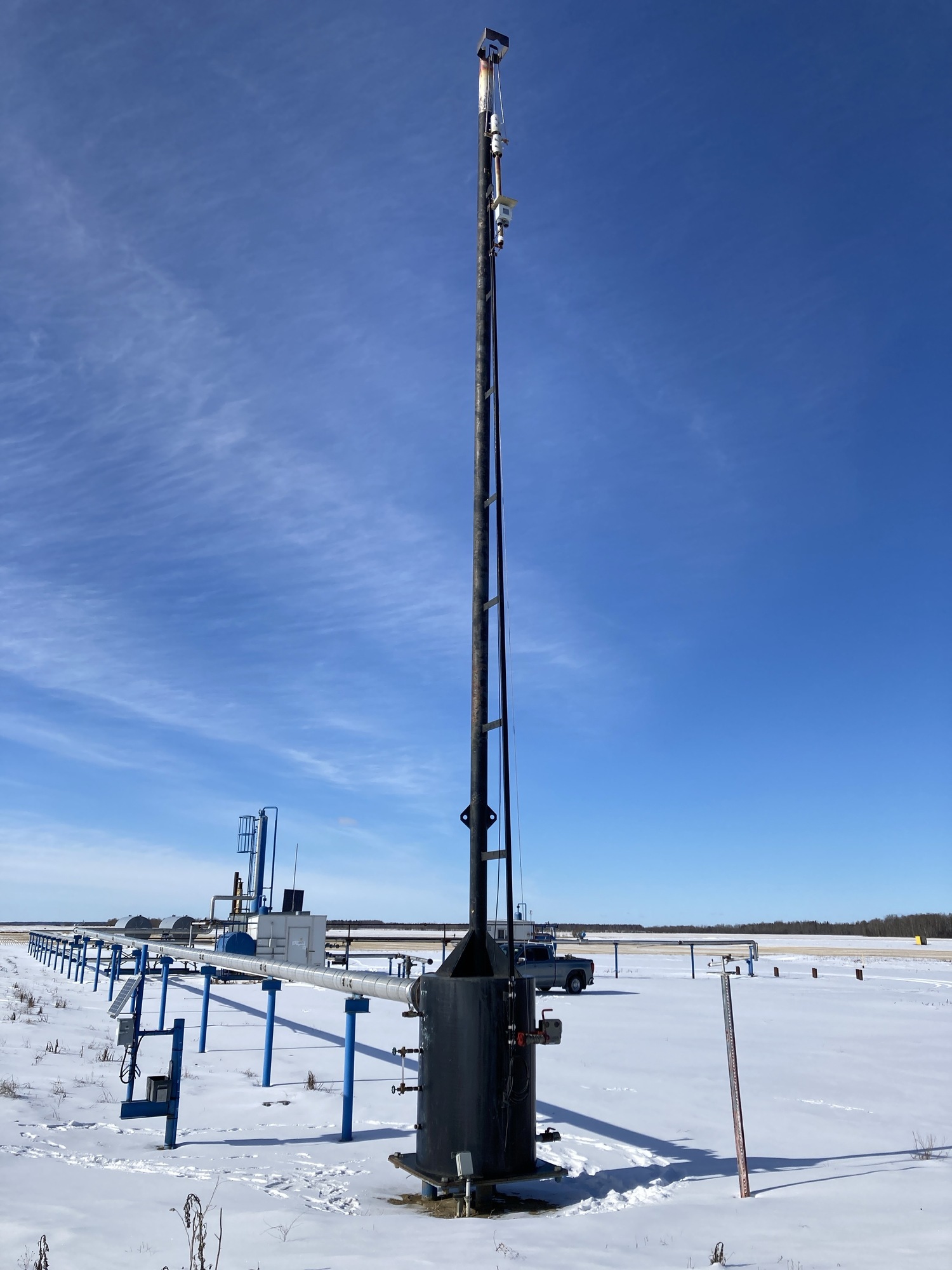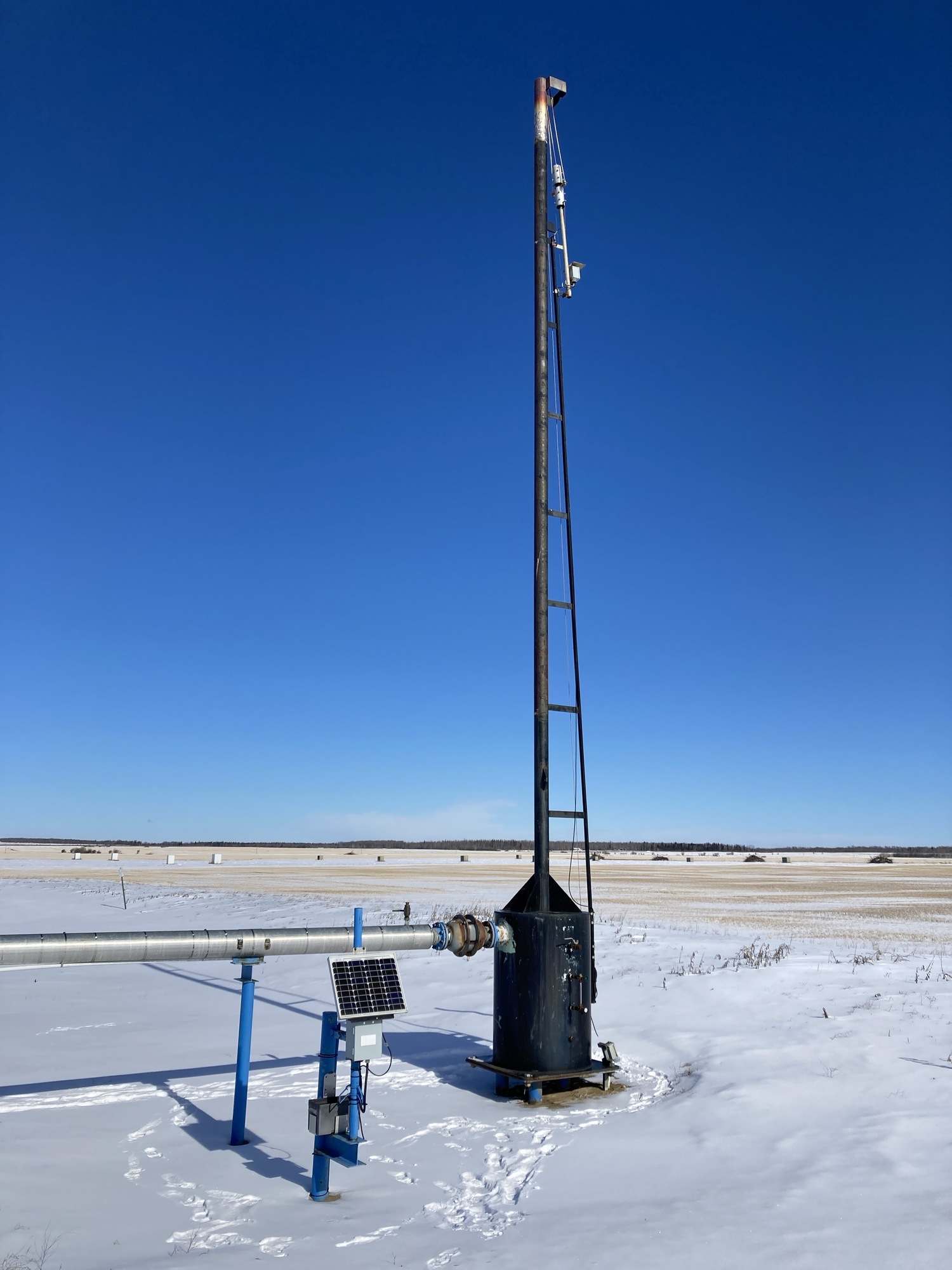 Flare stack has no rating plate or stamps of any kind to identify year or manufacture. Appears to be a 6” diameter Yeah, there’s nothing there is literally nothing. I have no idea. approximately 30 feet high.