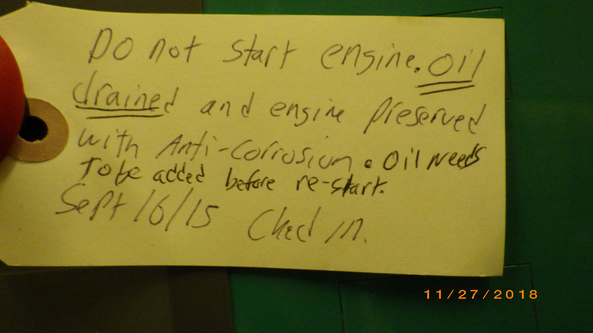 ENGINE DRAINED AND PRESERVED