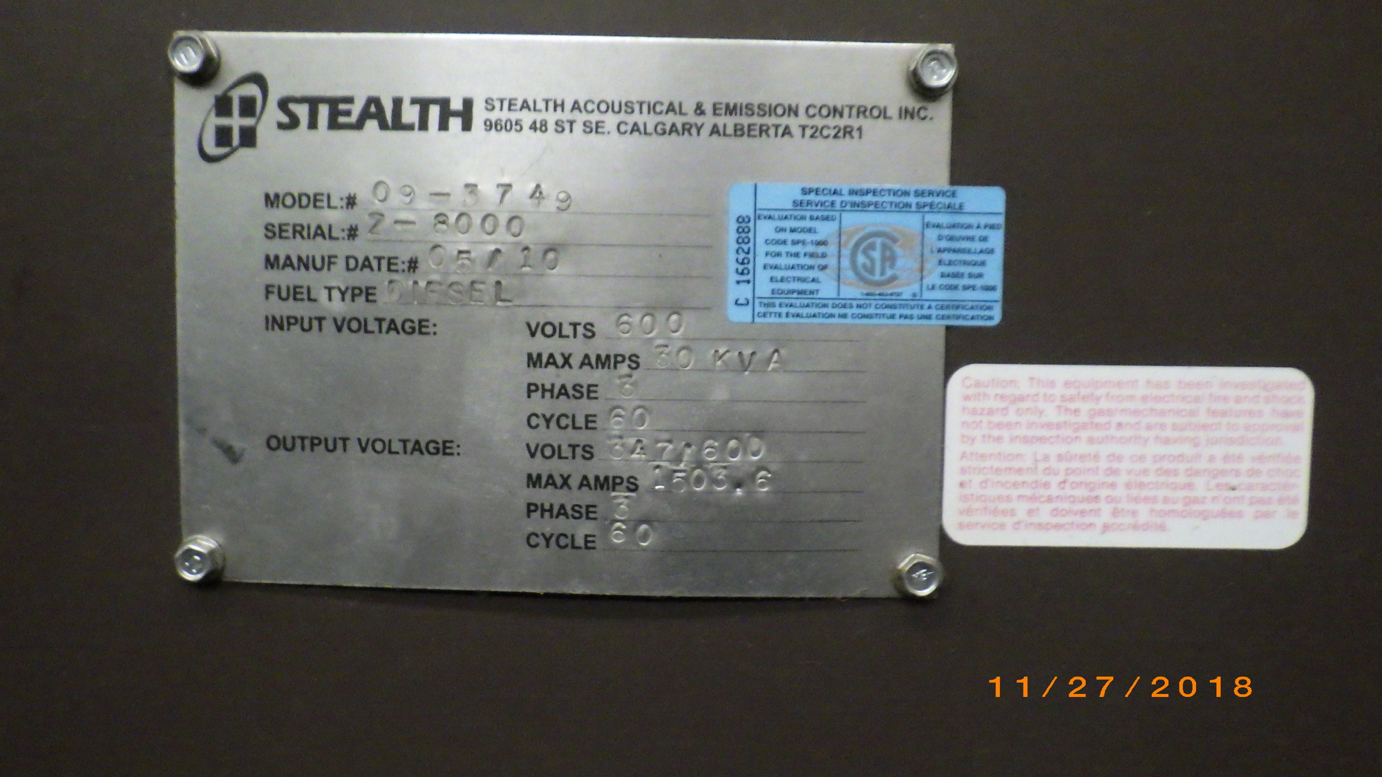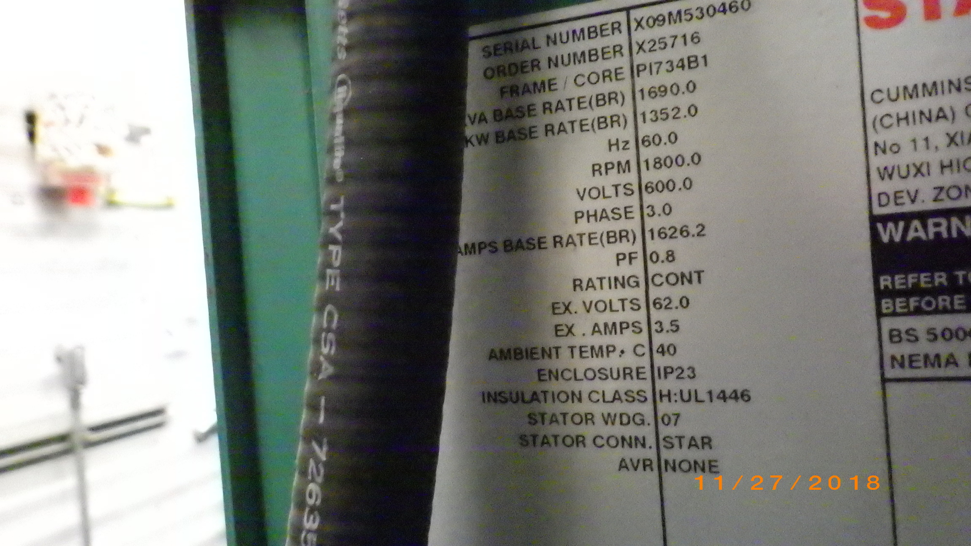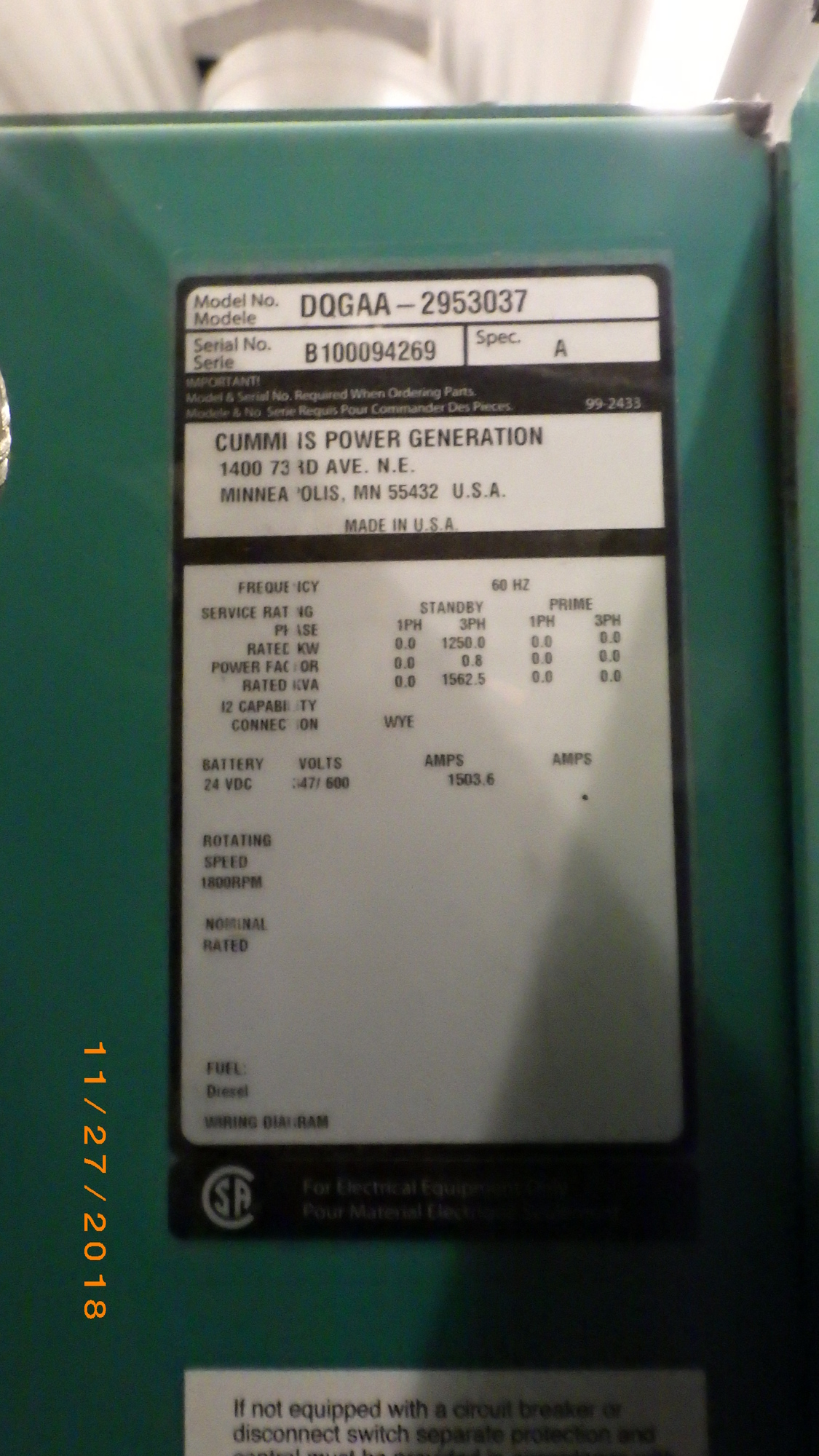 STANDBY GENERATOR PKG 1.25 MW
