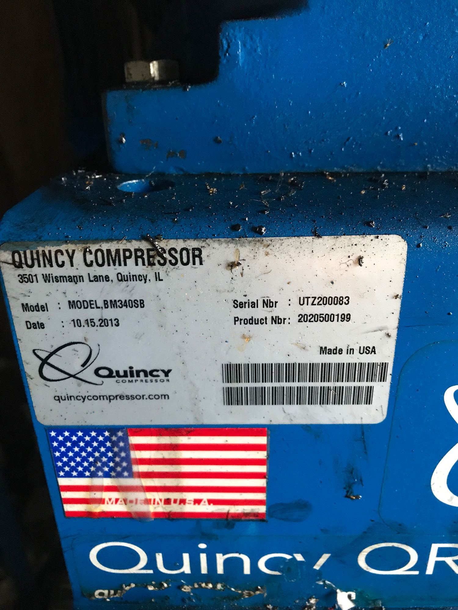 C/W QUINCY QR-340 AIR COMPRESSOR