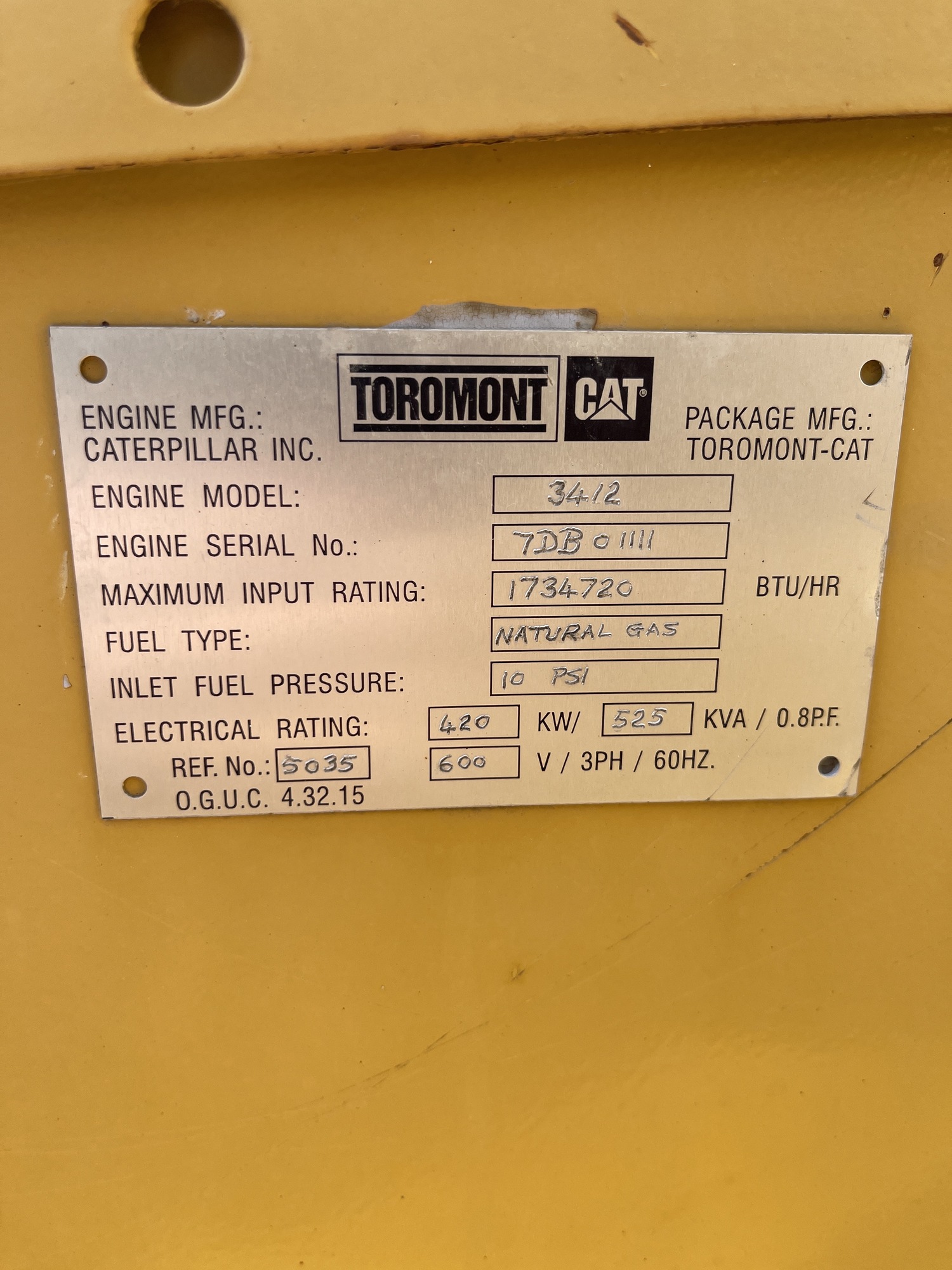 420 kW SR4 Caterpillar G3412 Natural Gas Genset