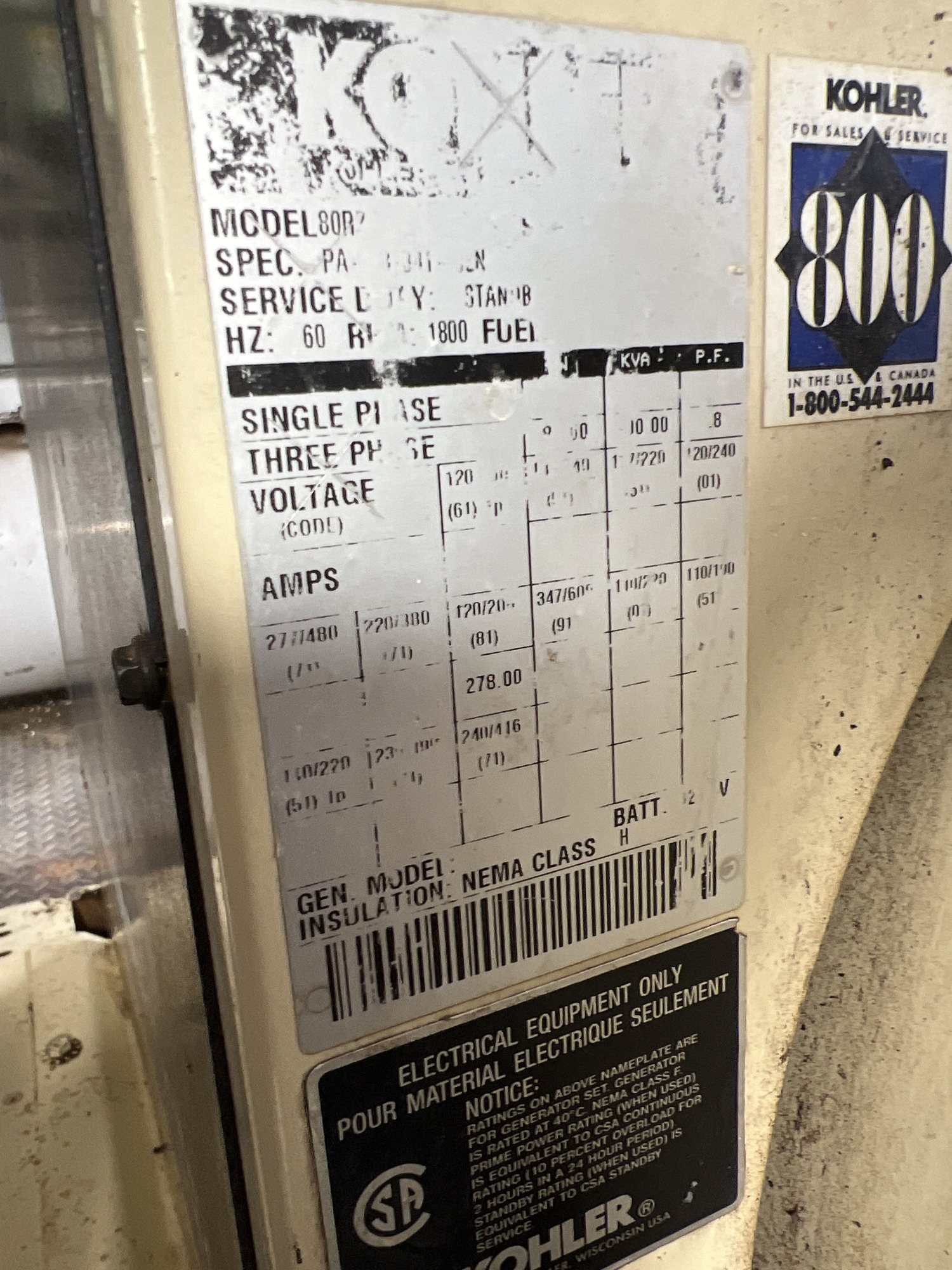 Kw RATING ESTIMATED BASED ON HP