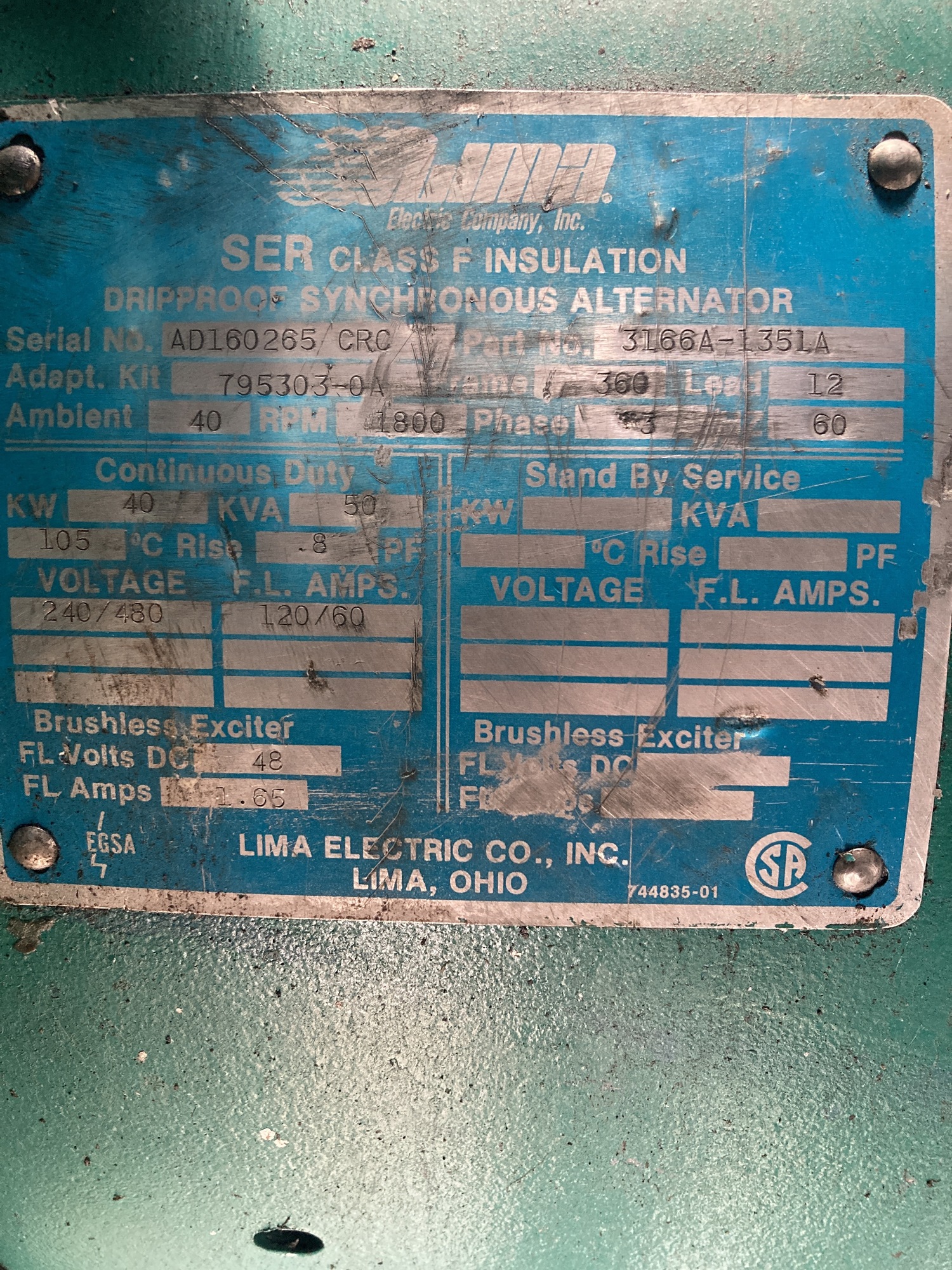 Kw RATING ESTIMATED BASED ON HP