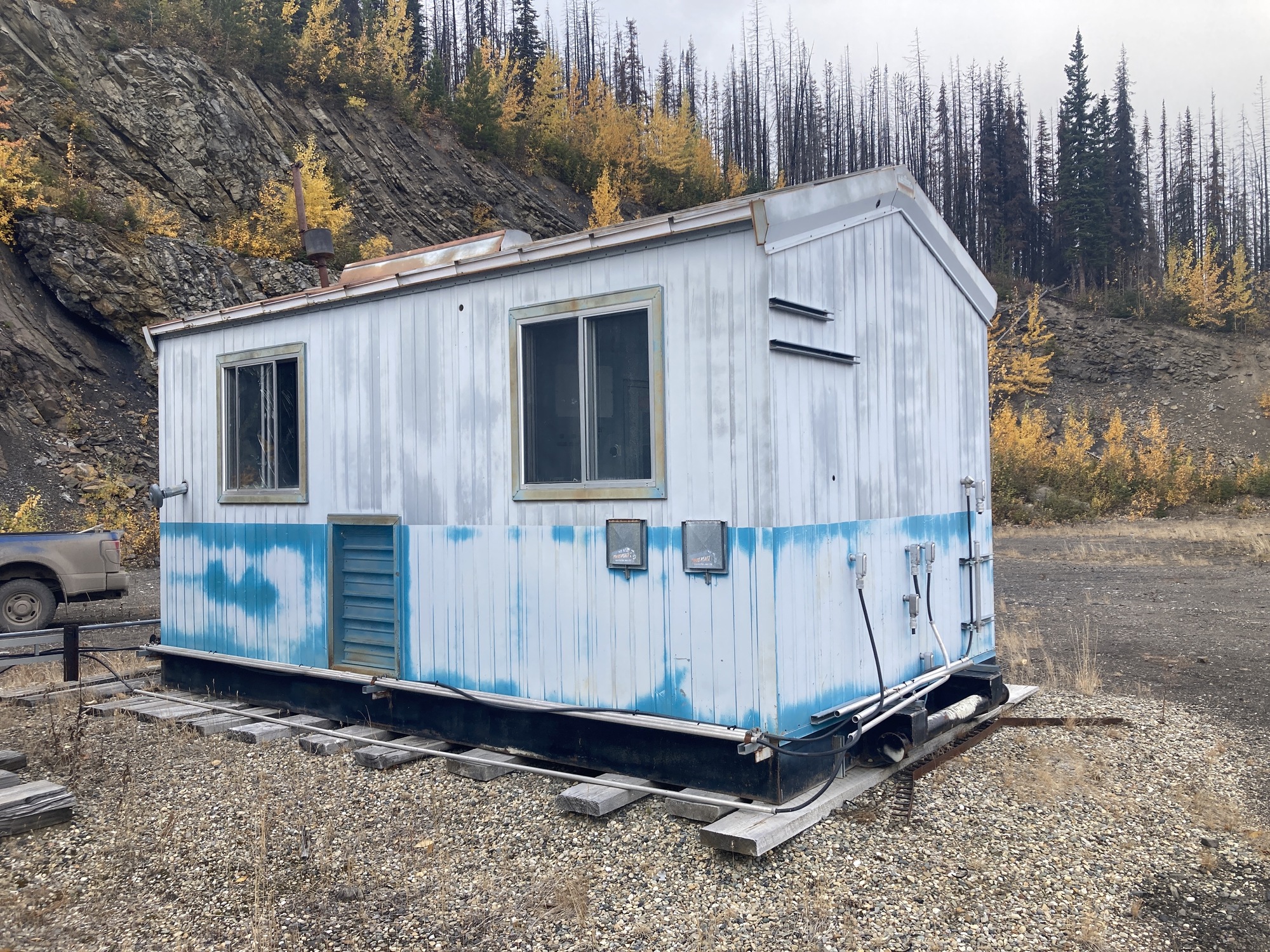 Road has not been plowed this year, (2024) 5.3 kms in from km 23.5 on the Murray River road. Road is very steep and would require a Cat to open.