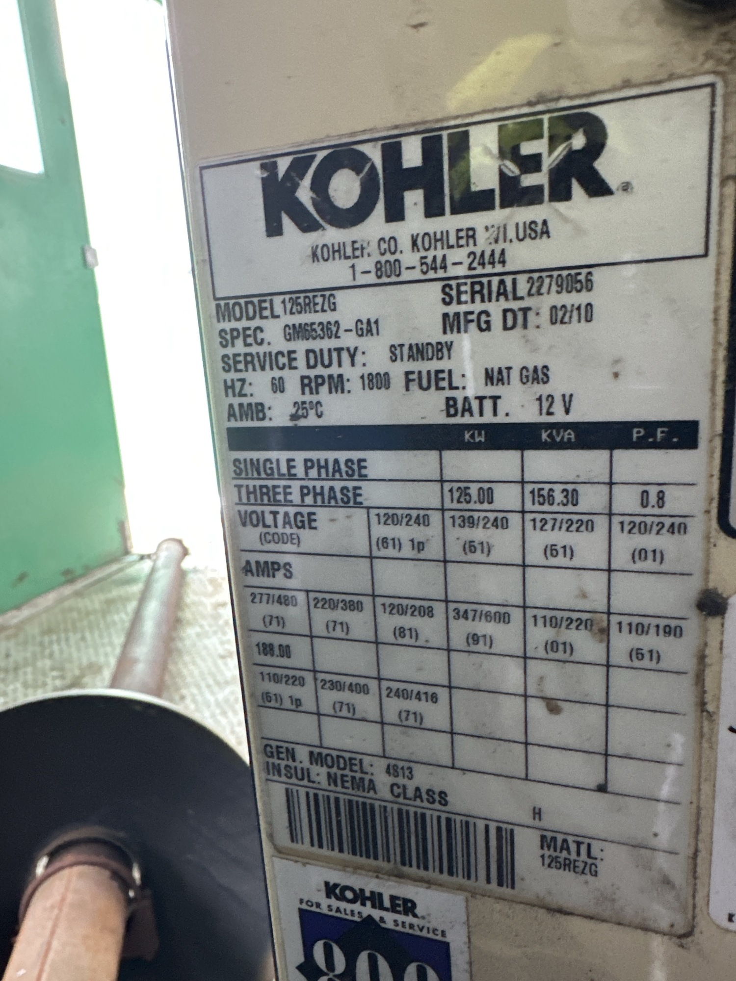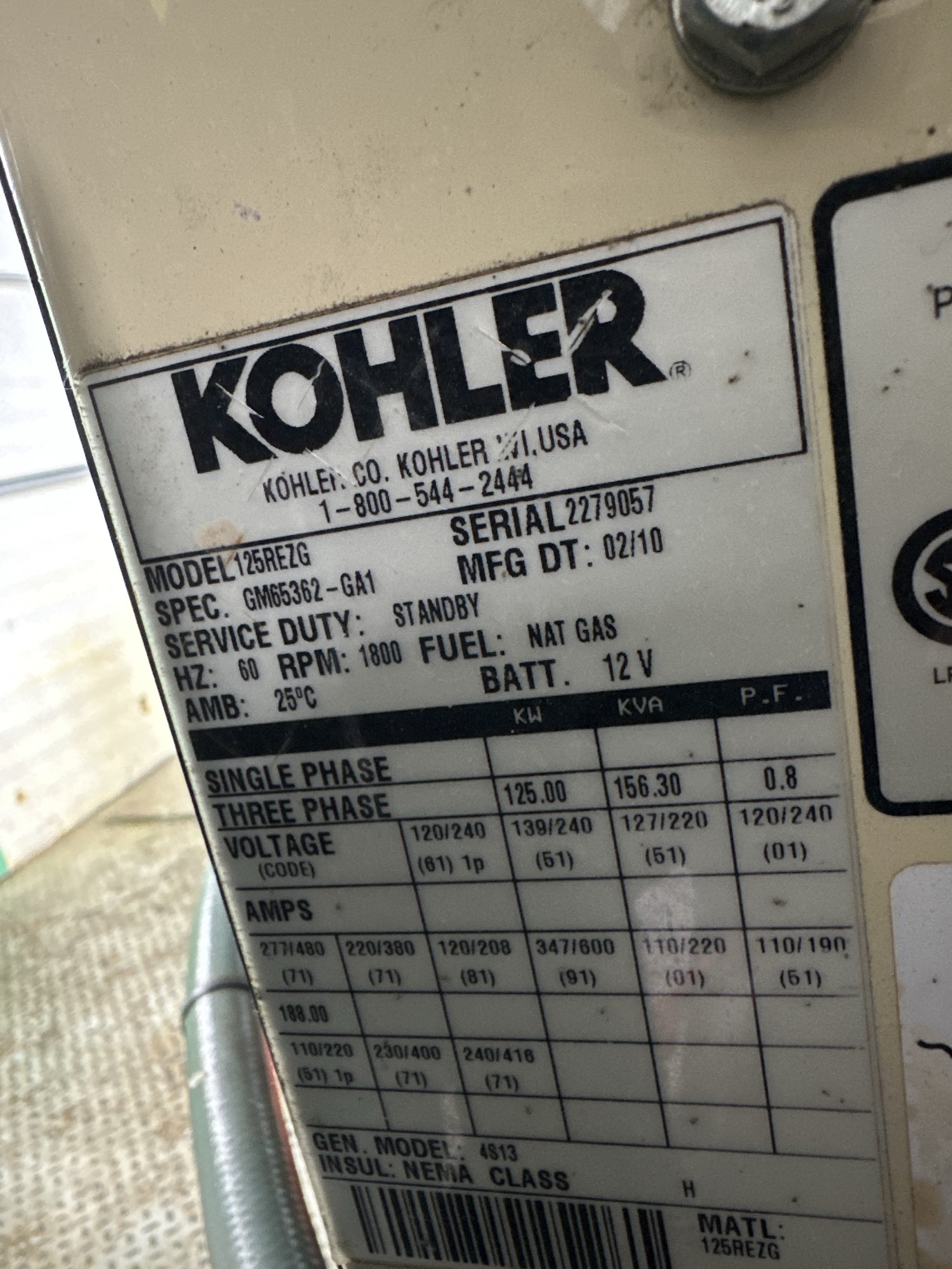 Dual 125 kW Kohler Nat Gas Genset