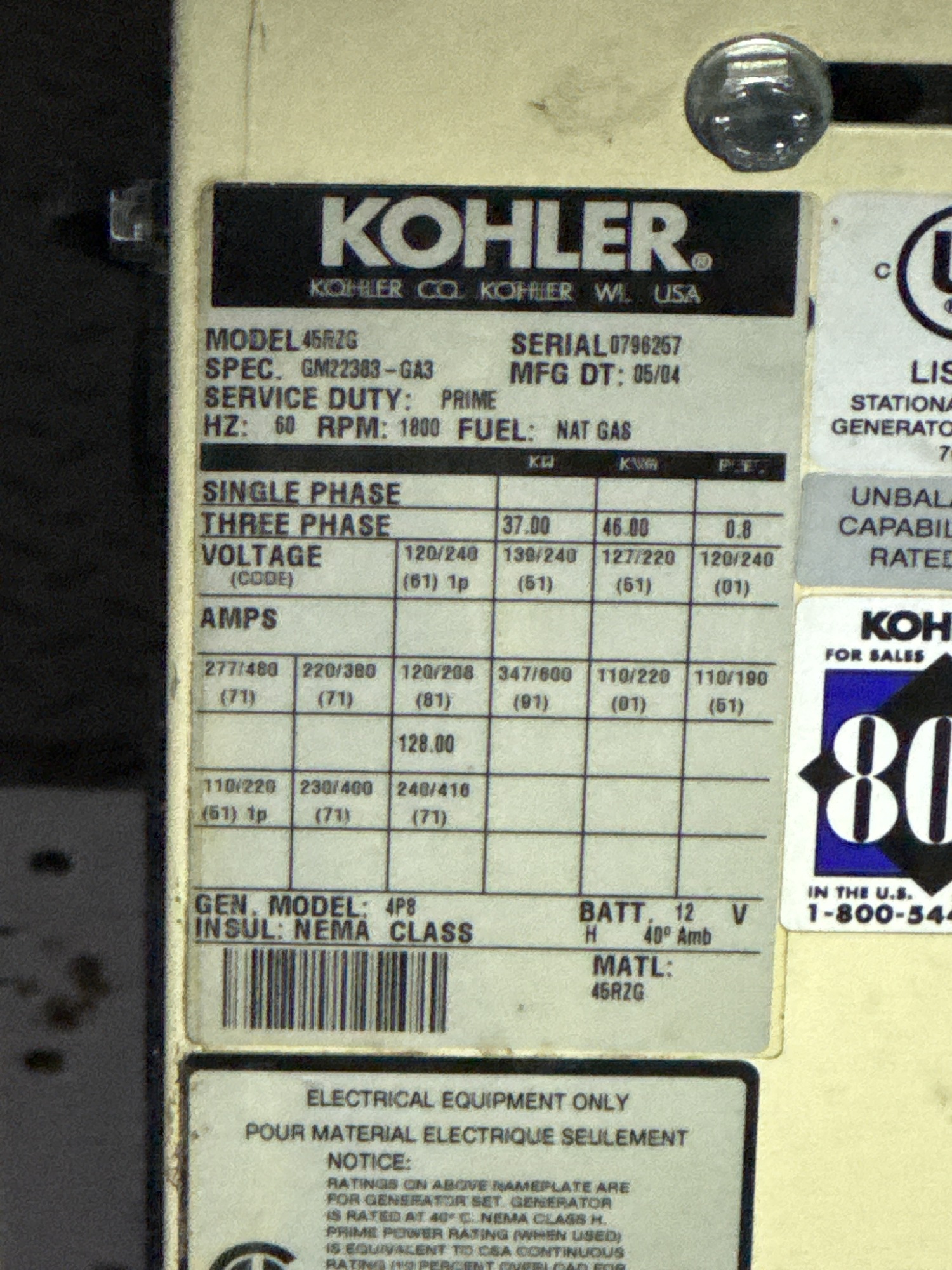 Gen Set Information