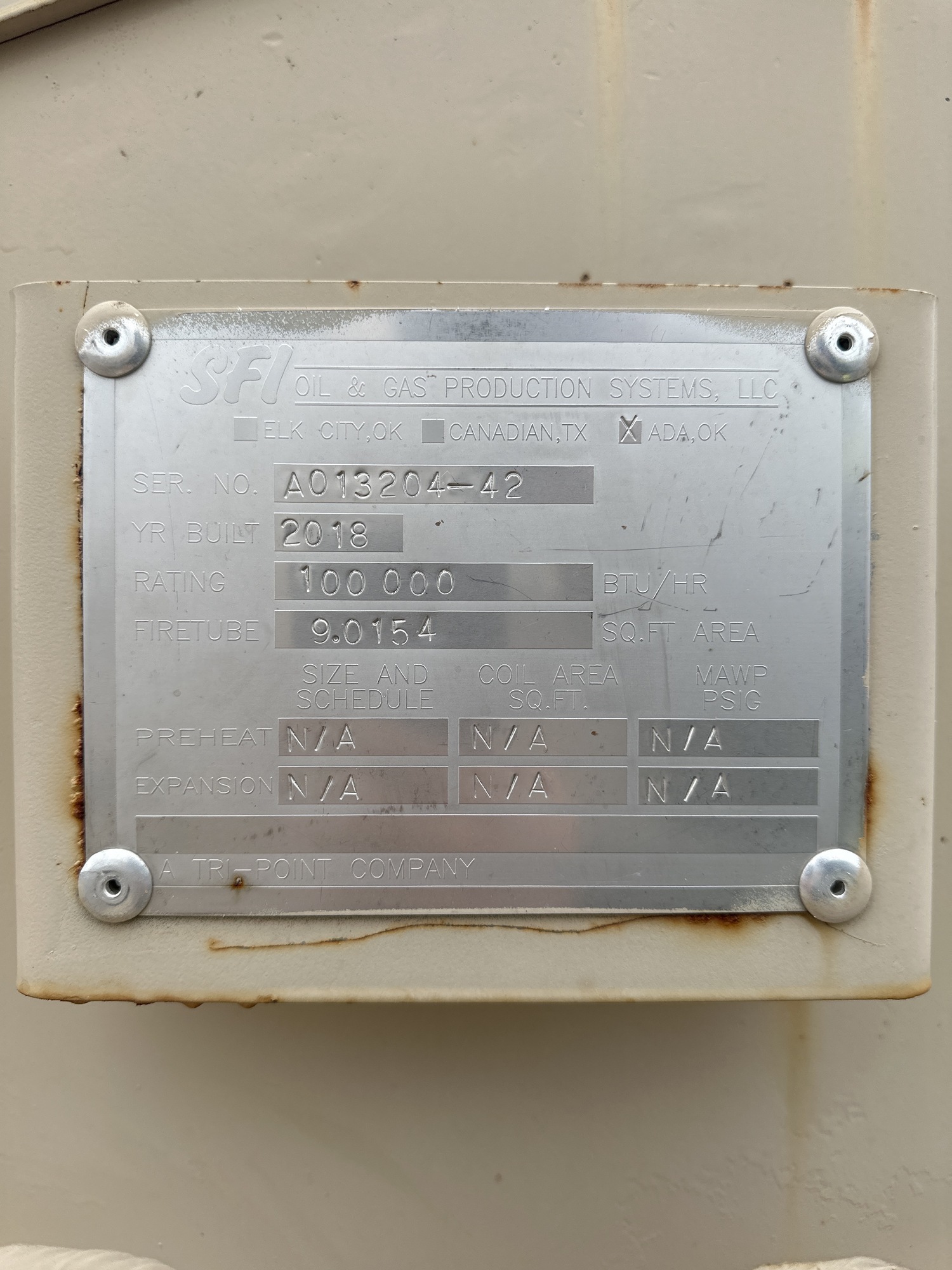Firetube: 9.0154 SQ.FT. AREA