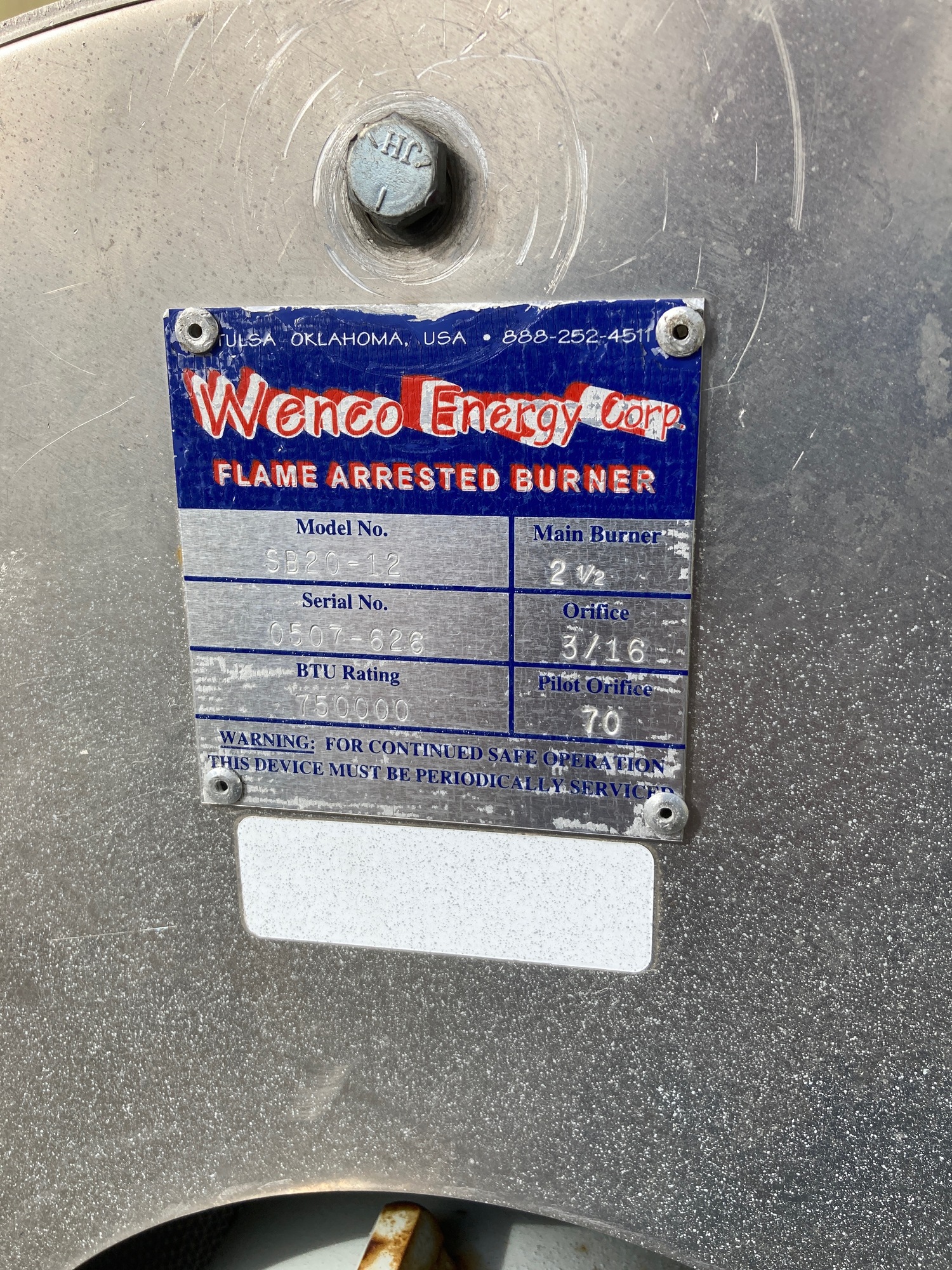 750000 Btu heat medium no manufacturer tag