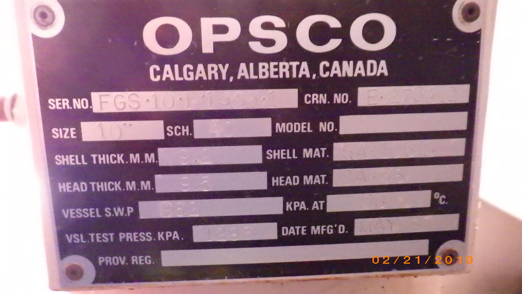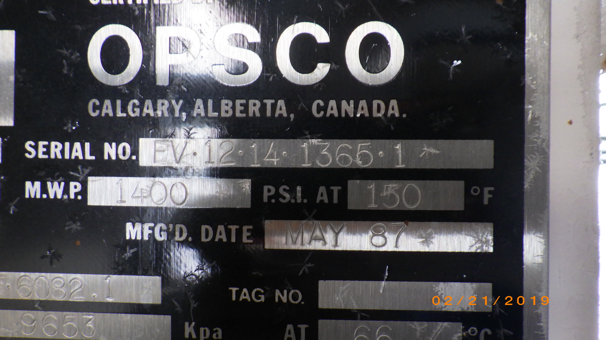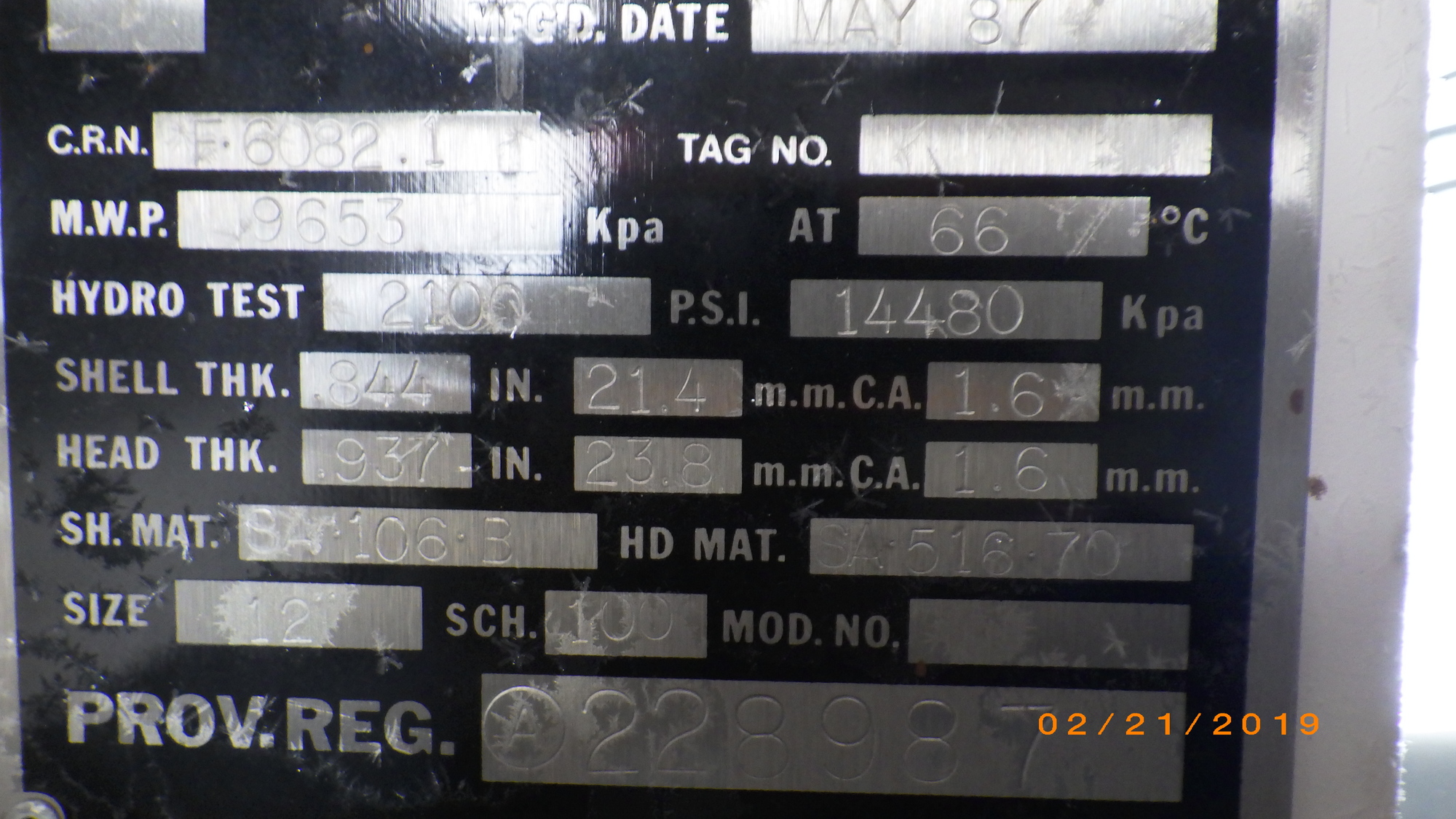 MAWP In (kPa) 0