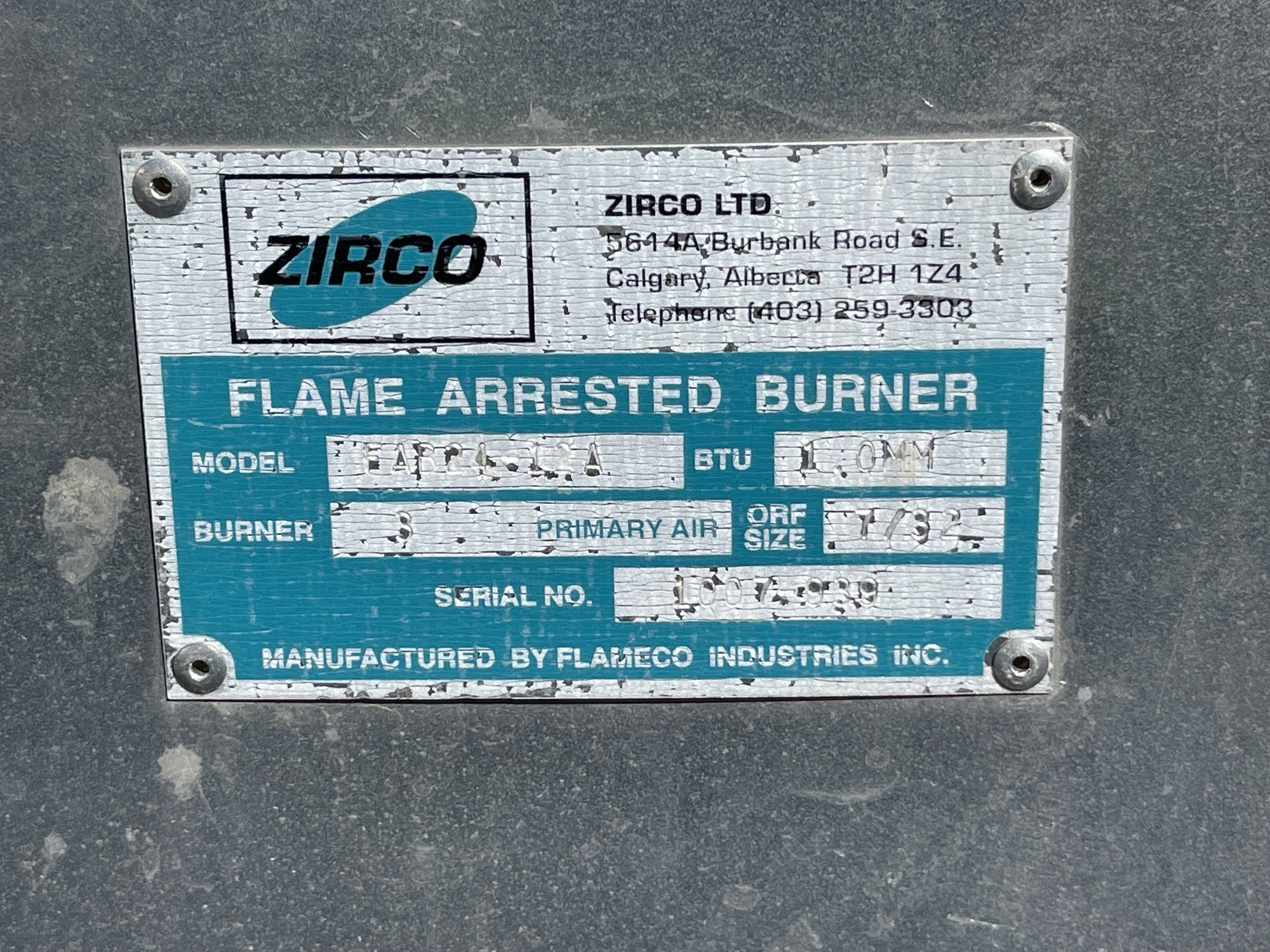 Flame Arrested Burner Tag*
