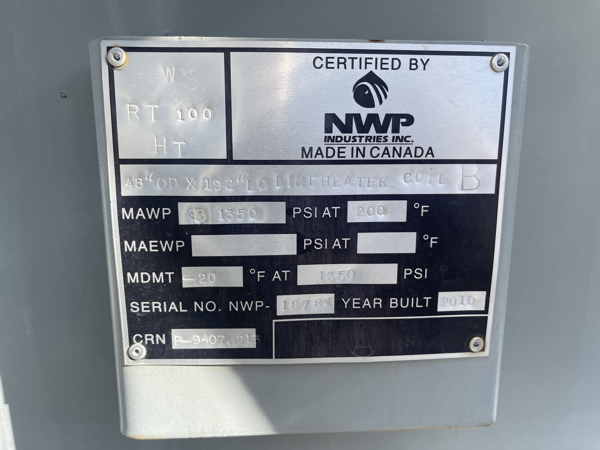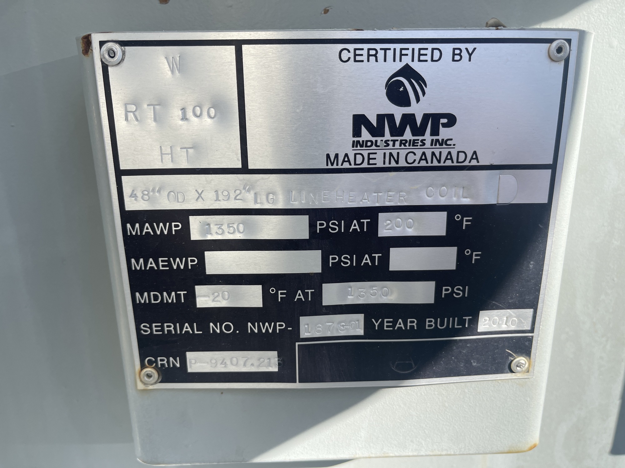 MAWP: 1350 PSI at 200 F