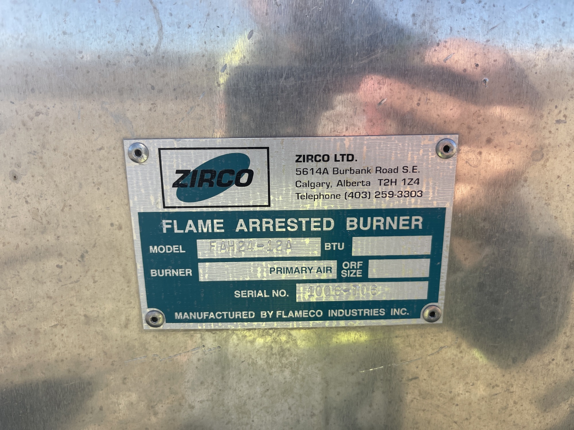Flame Arrested Burner Tag*