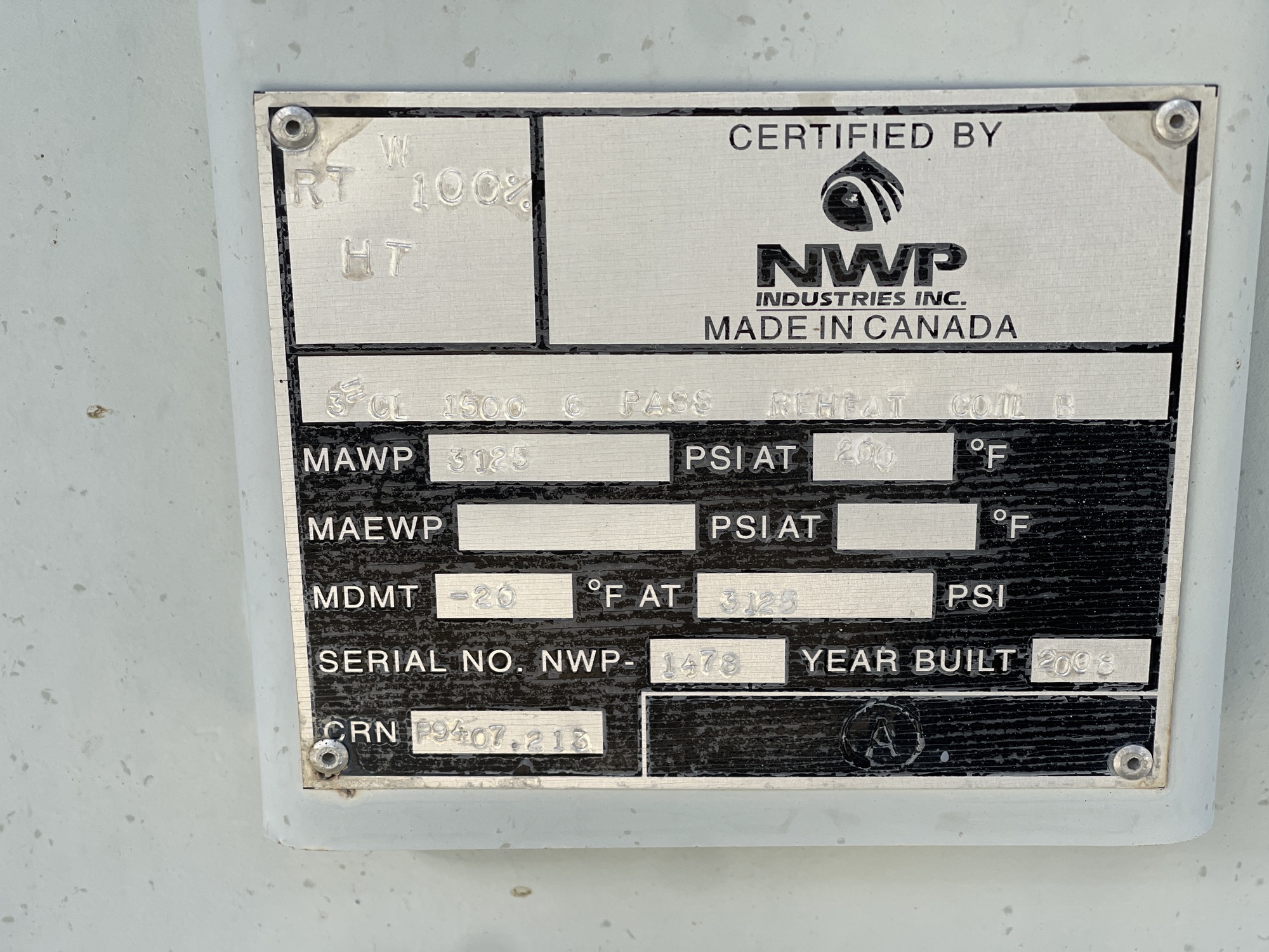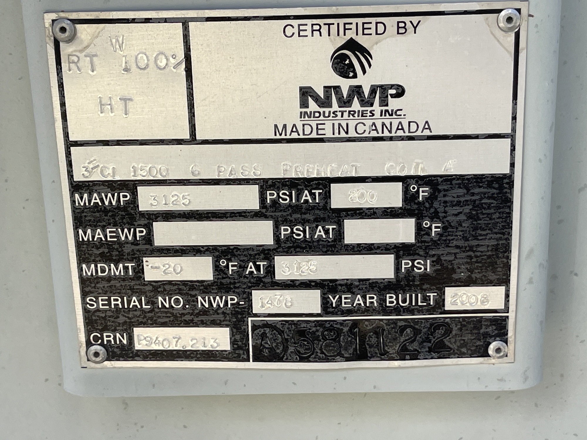 MAWP In (PSI) 3125