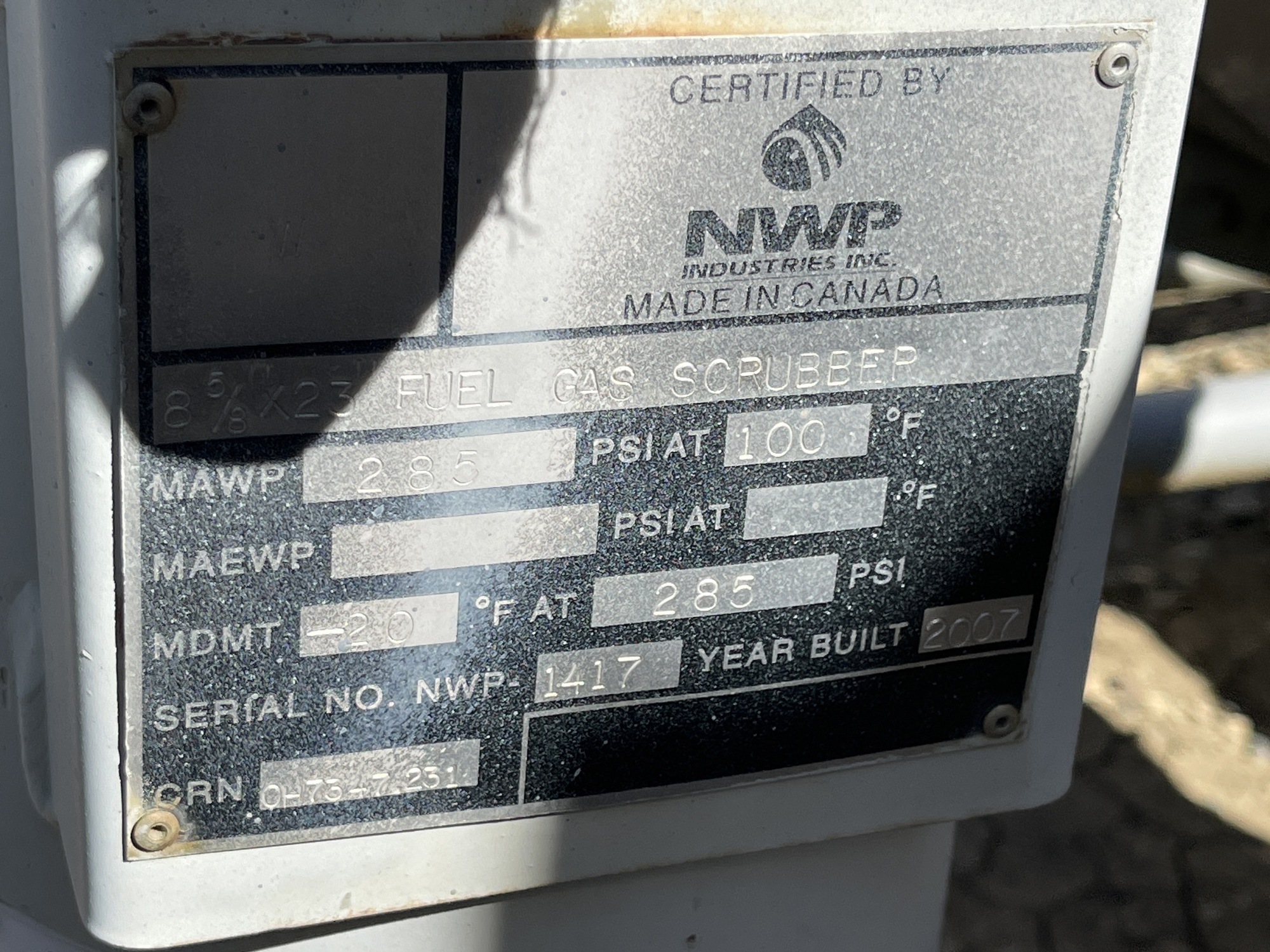 MAWP: 285 PSI at 100 F