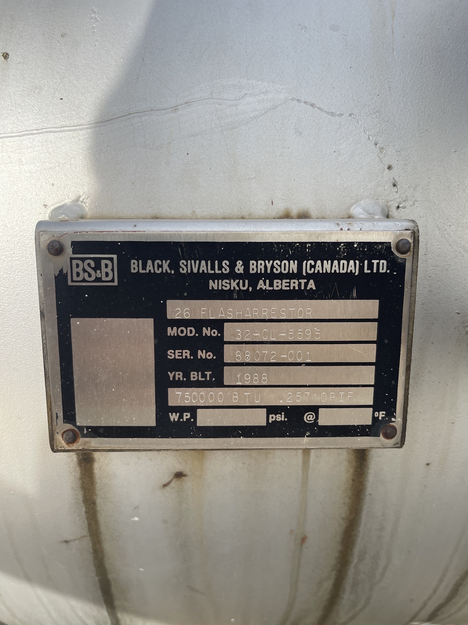 BS&B Flash Arrestor Tag*: