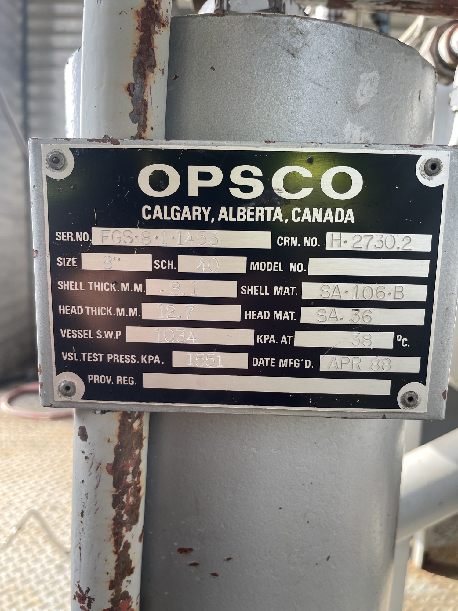 MAWP: 1034 KPA @ 38 C