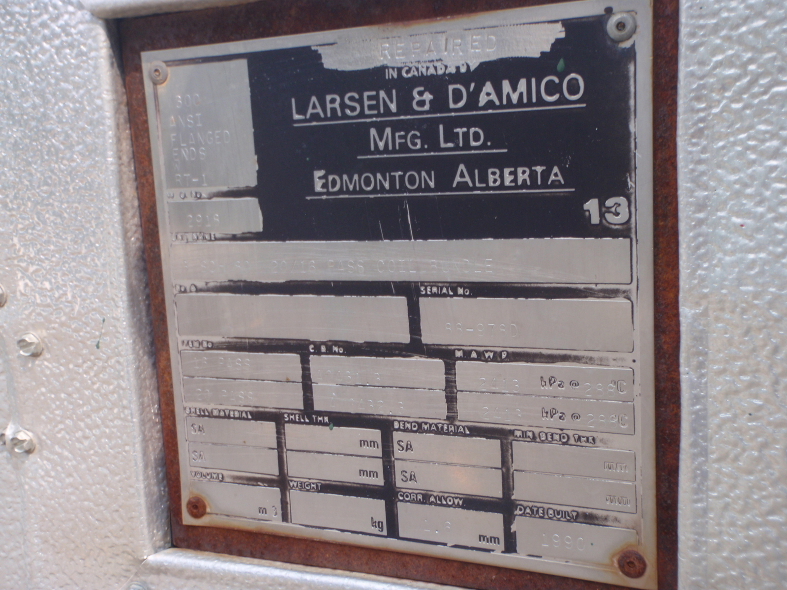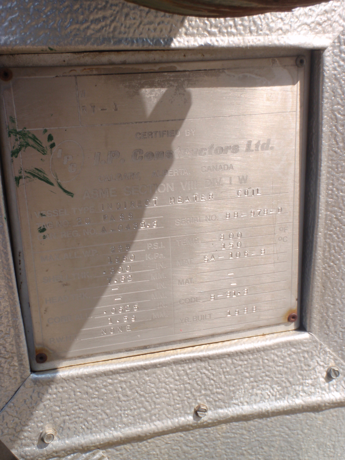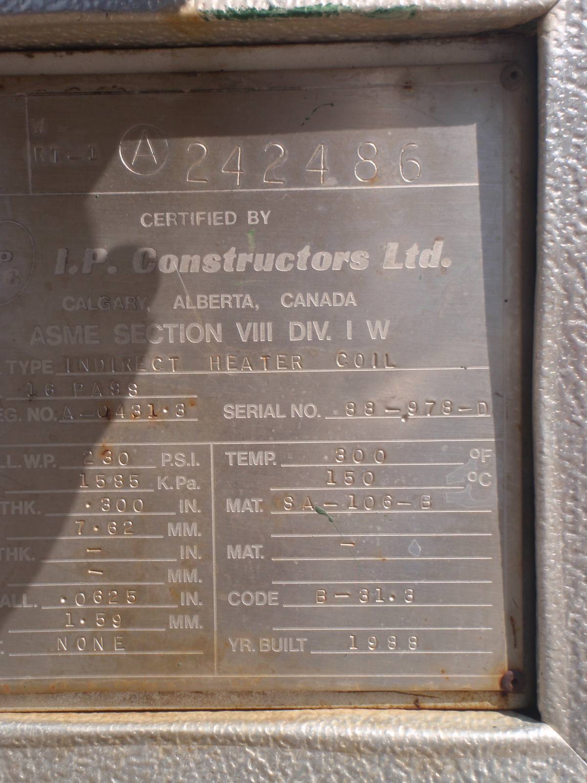Description: Built 1988 Indirect Heater Coil