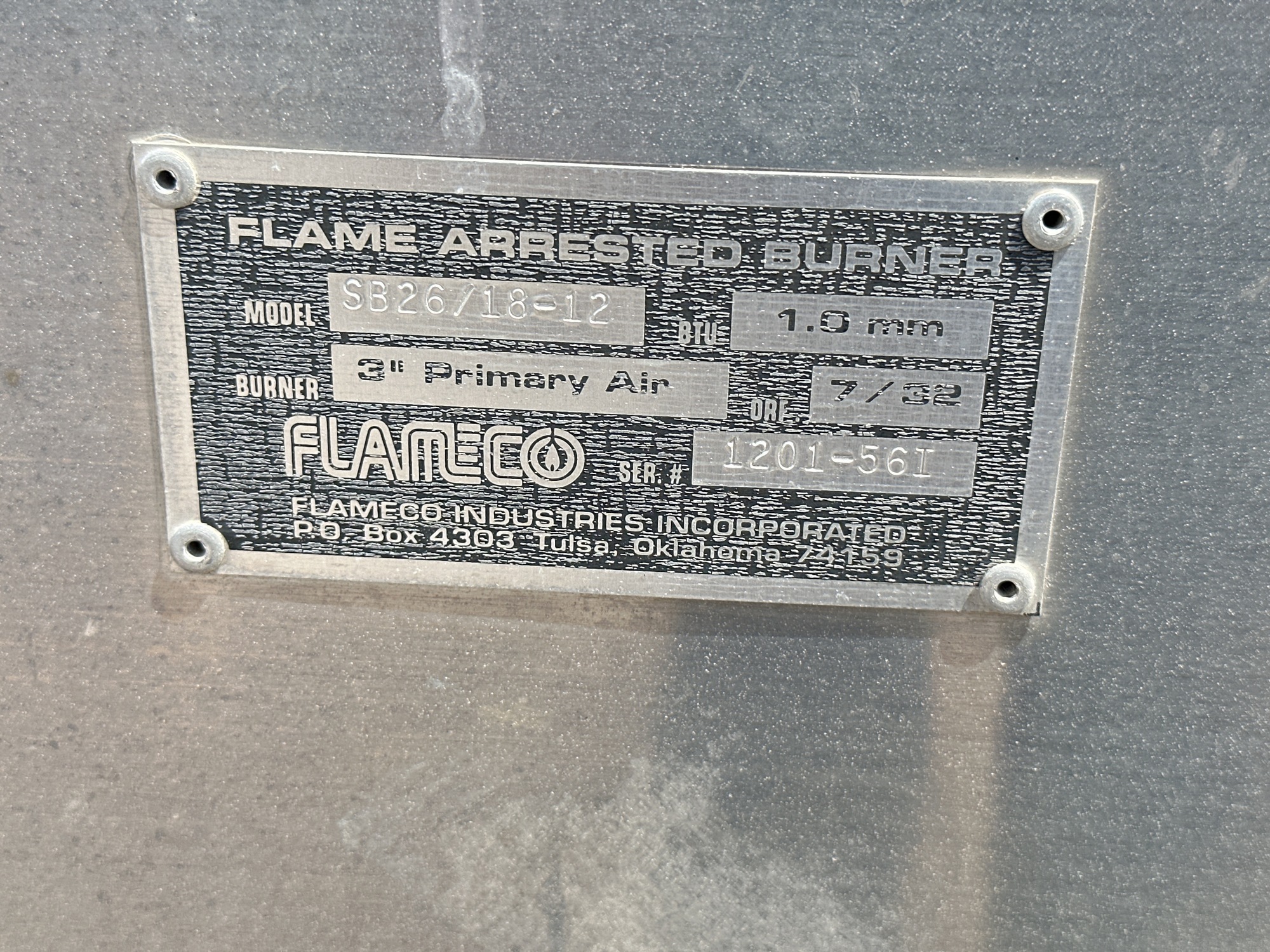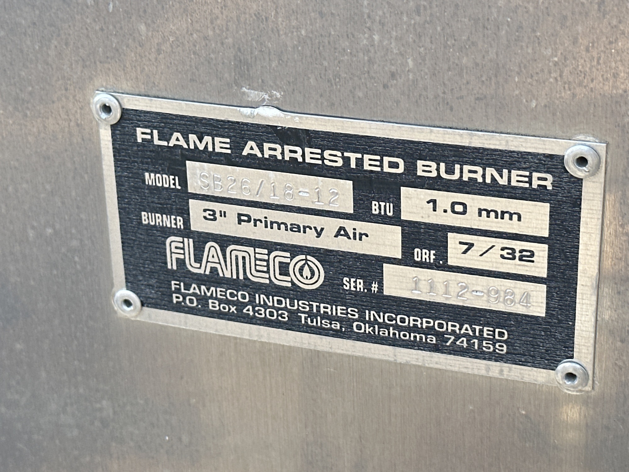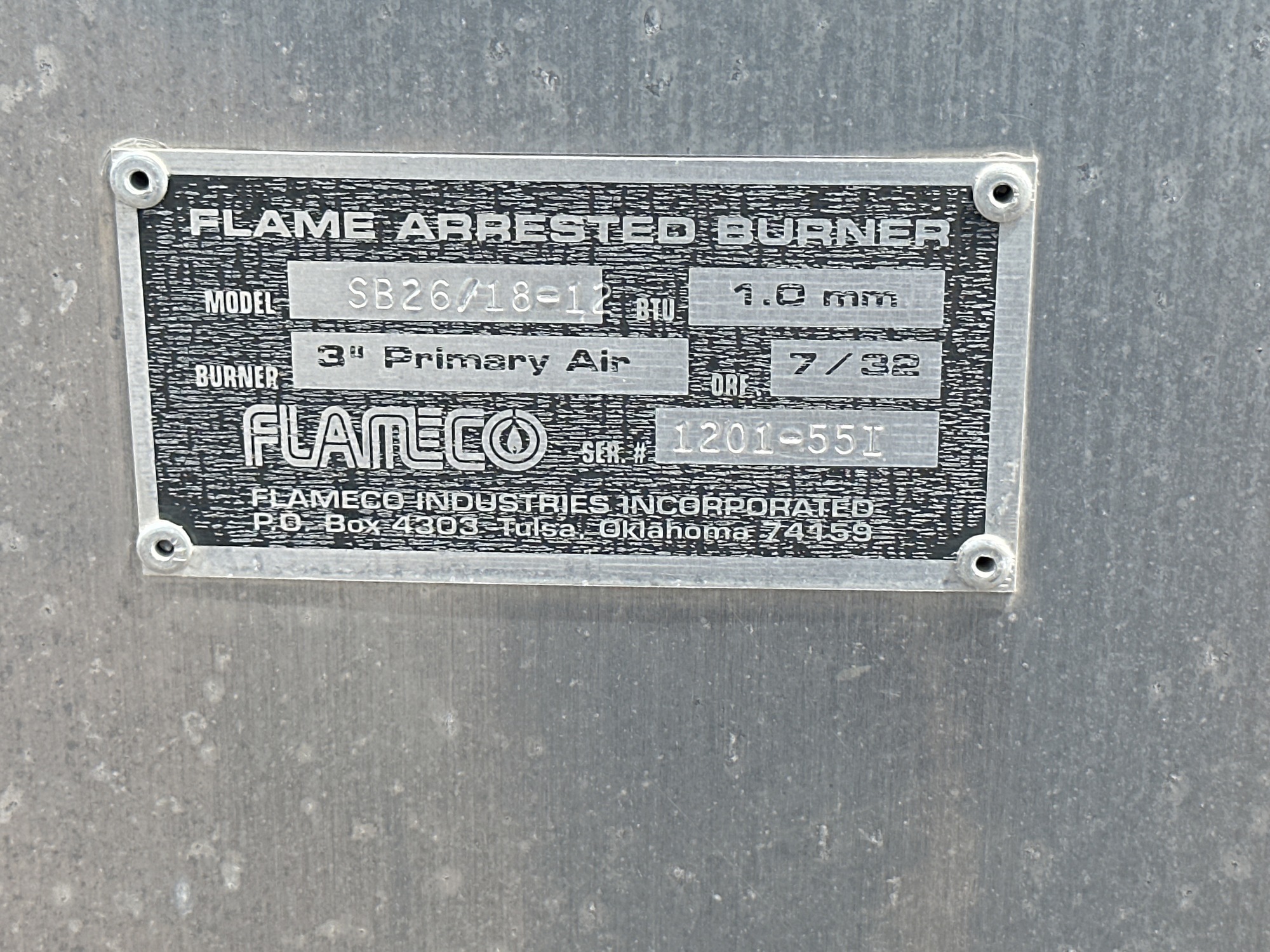 Flame Arrested Burner Tag 2*