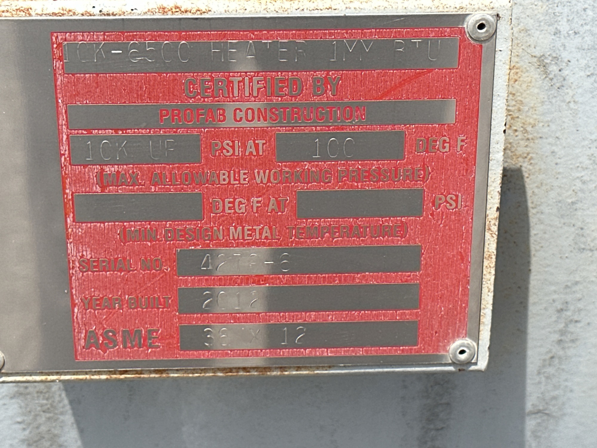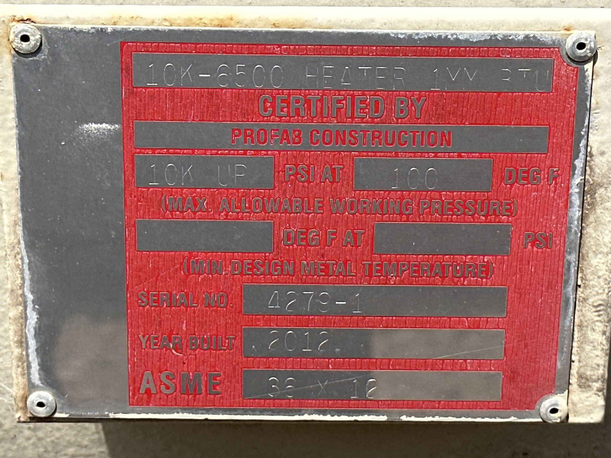Model: 10K-6500 Heater 1MMBTU
