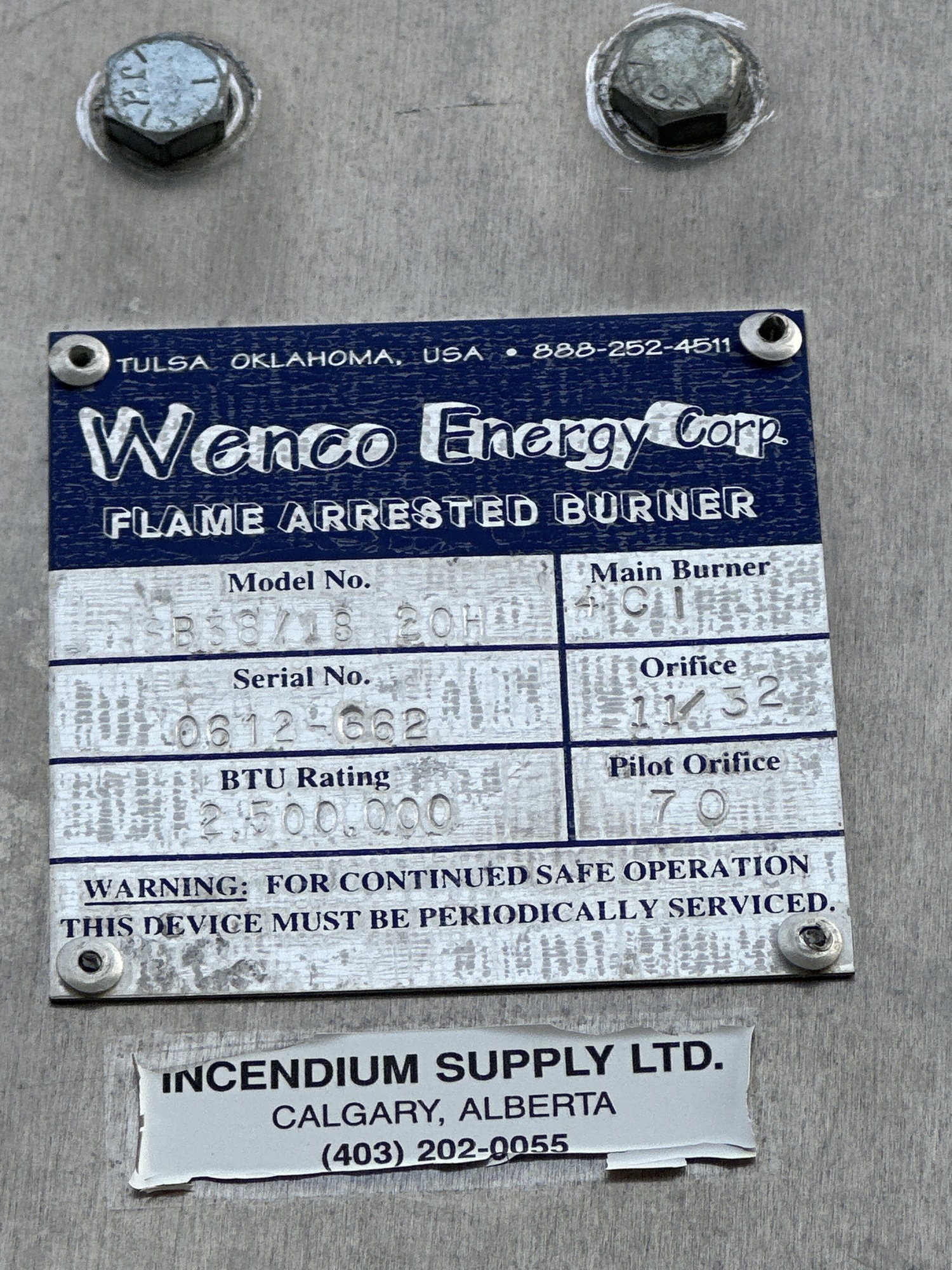 Flame Arrested Burner Tag*