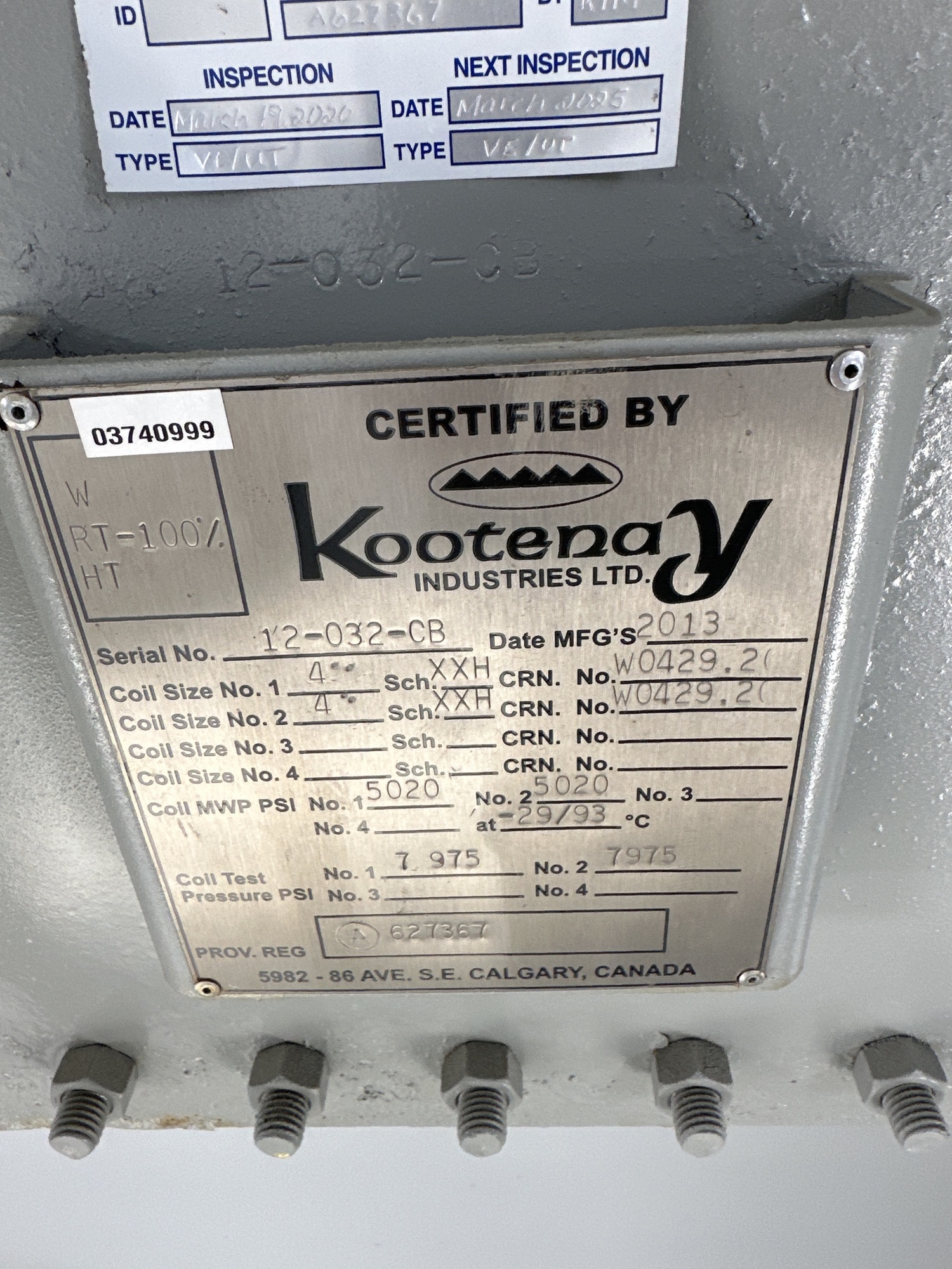 Coil 2 MAWP: 5020 PSI at 200°F