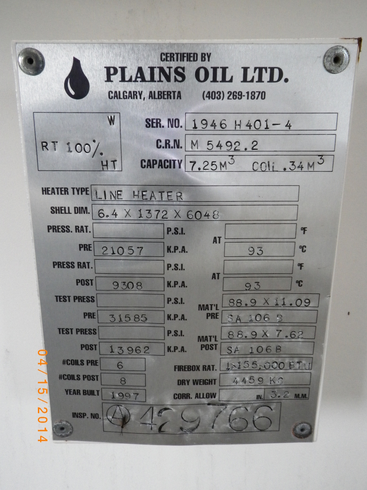 MAWP In (kPa) 21057