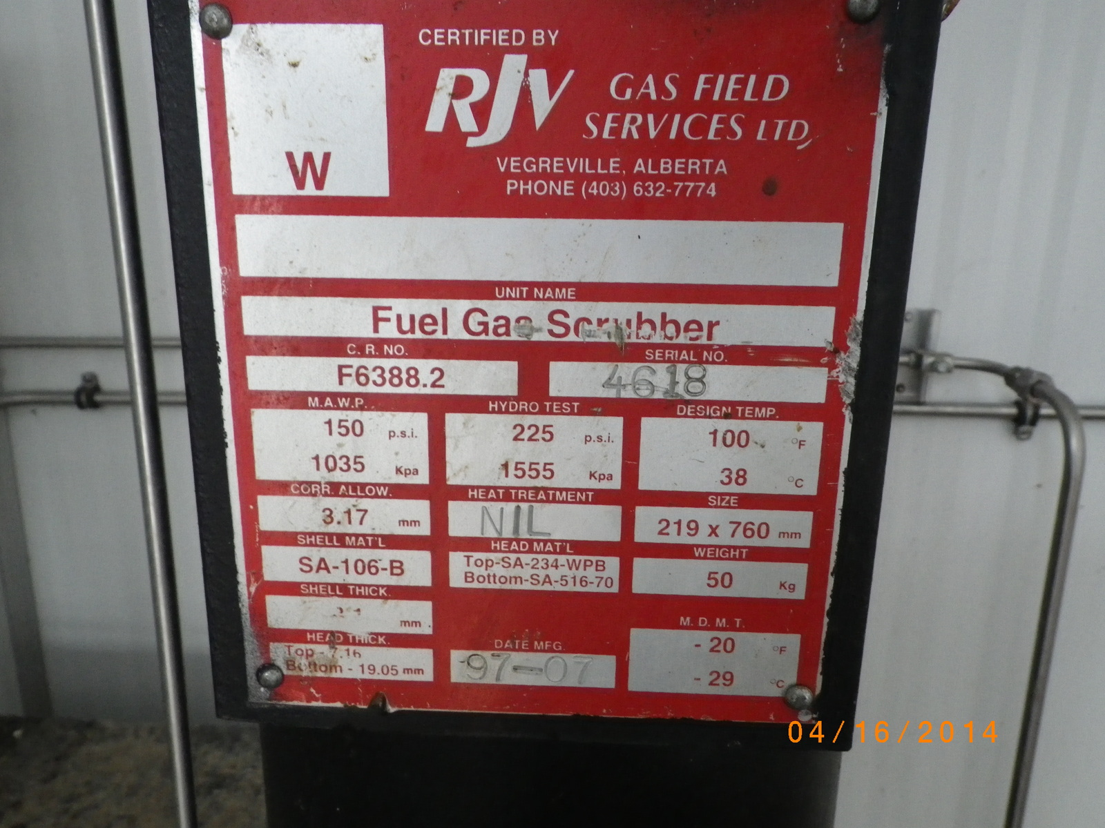 Manufacturer RJV GAS FIELD SERVICES