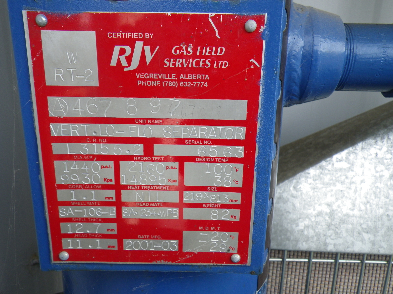 2" SWEET METER RUN, 8.5" SCRUBBER, 1440 PSI, COULD NOT GET IN BUT SHOULD BE LIKE OTHERS