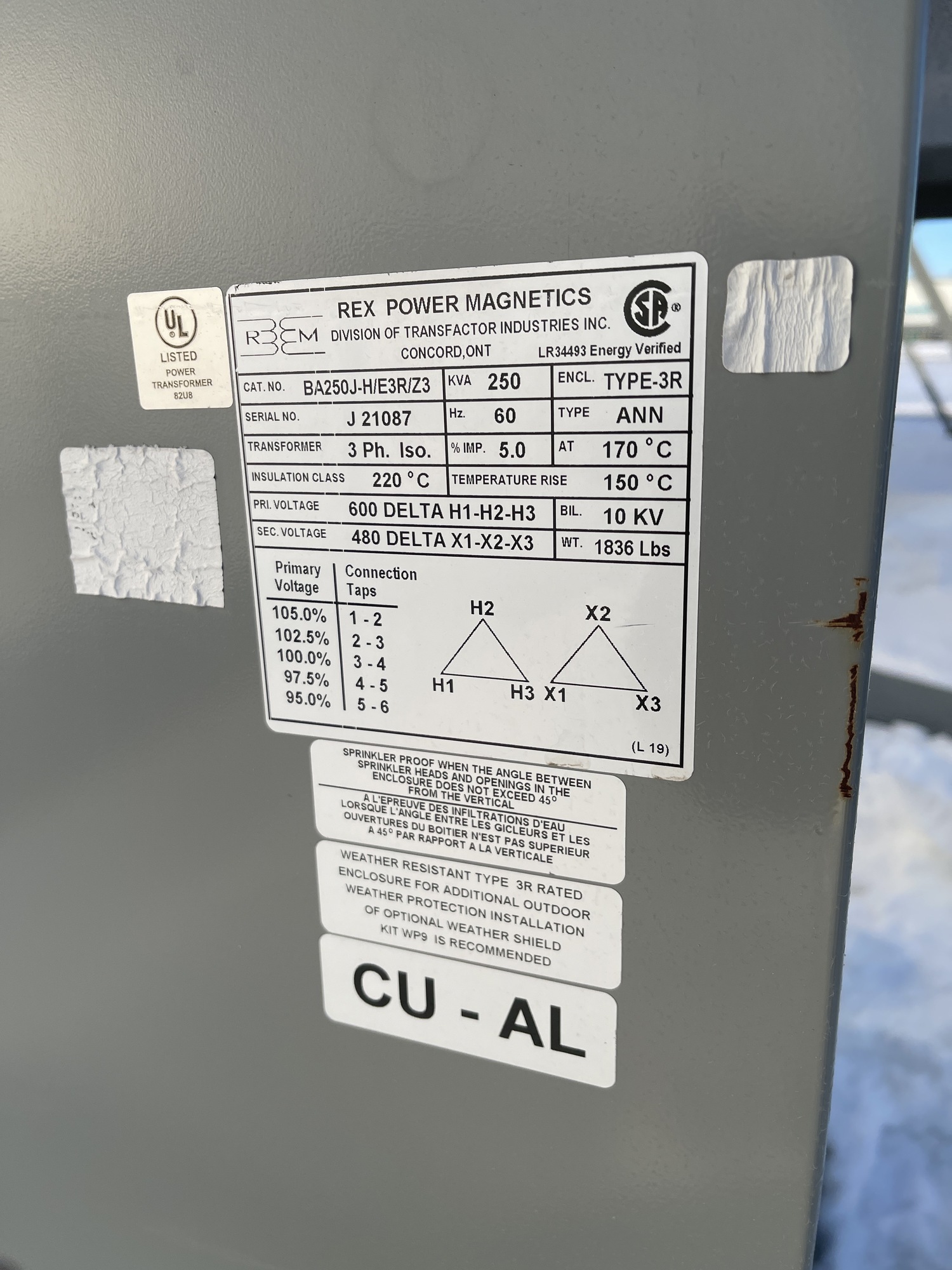 250 kVA 3-Ph. Iso. Rex Power Magnetics Transformer