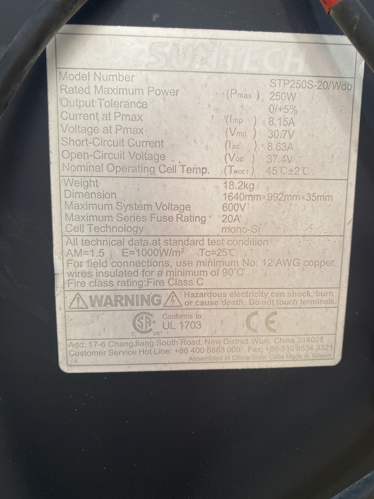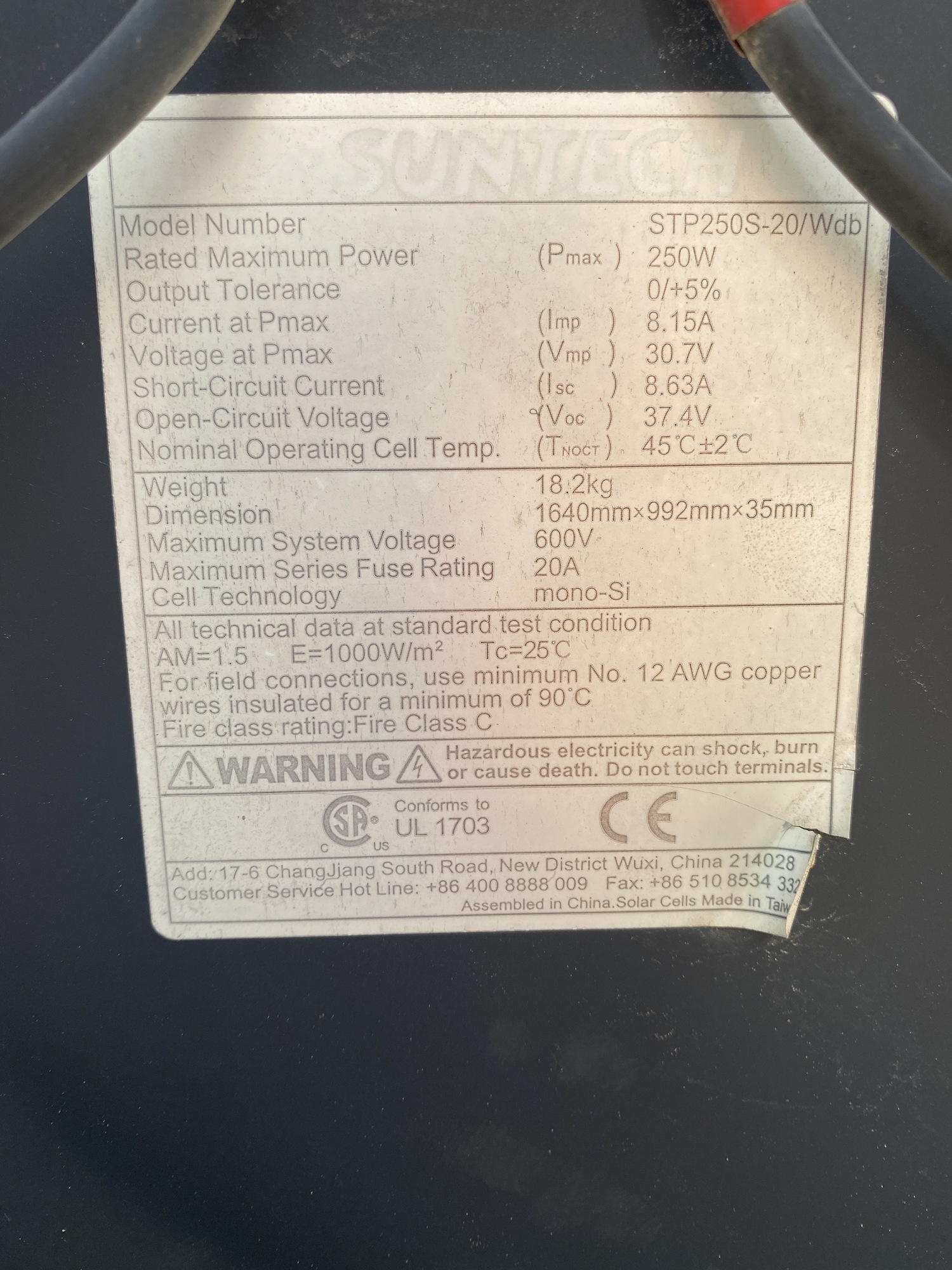 Max System Voltage: 600V
