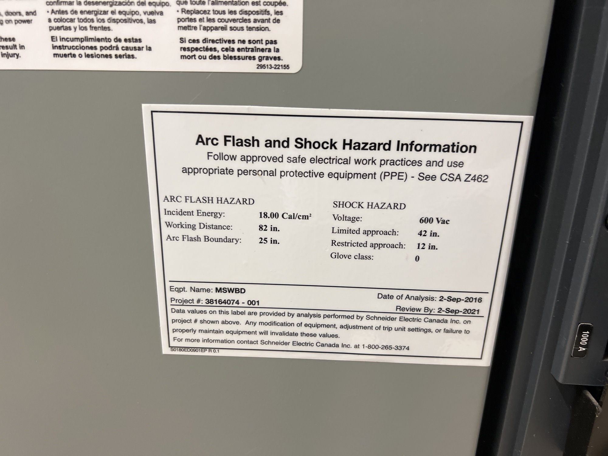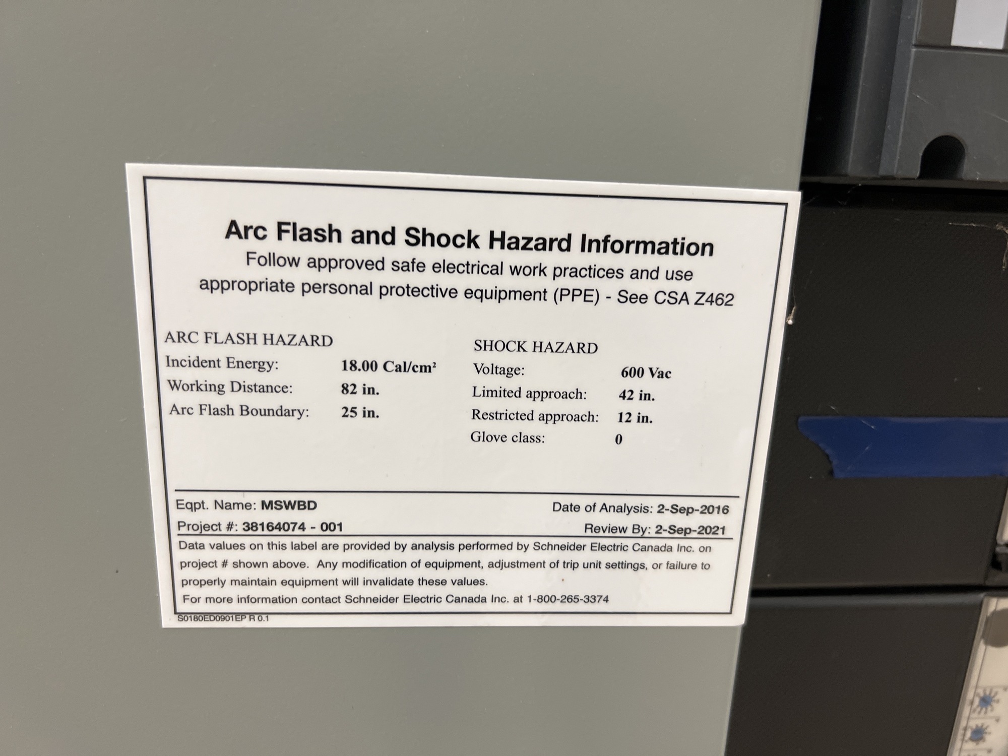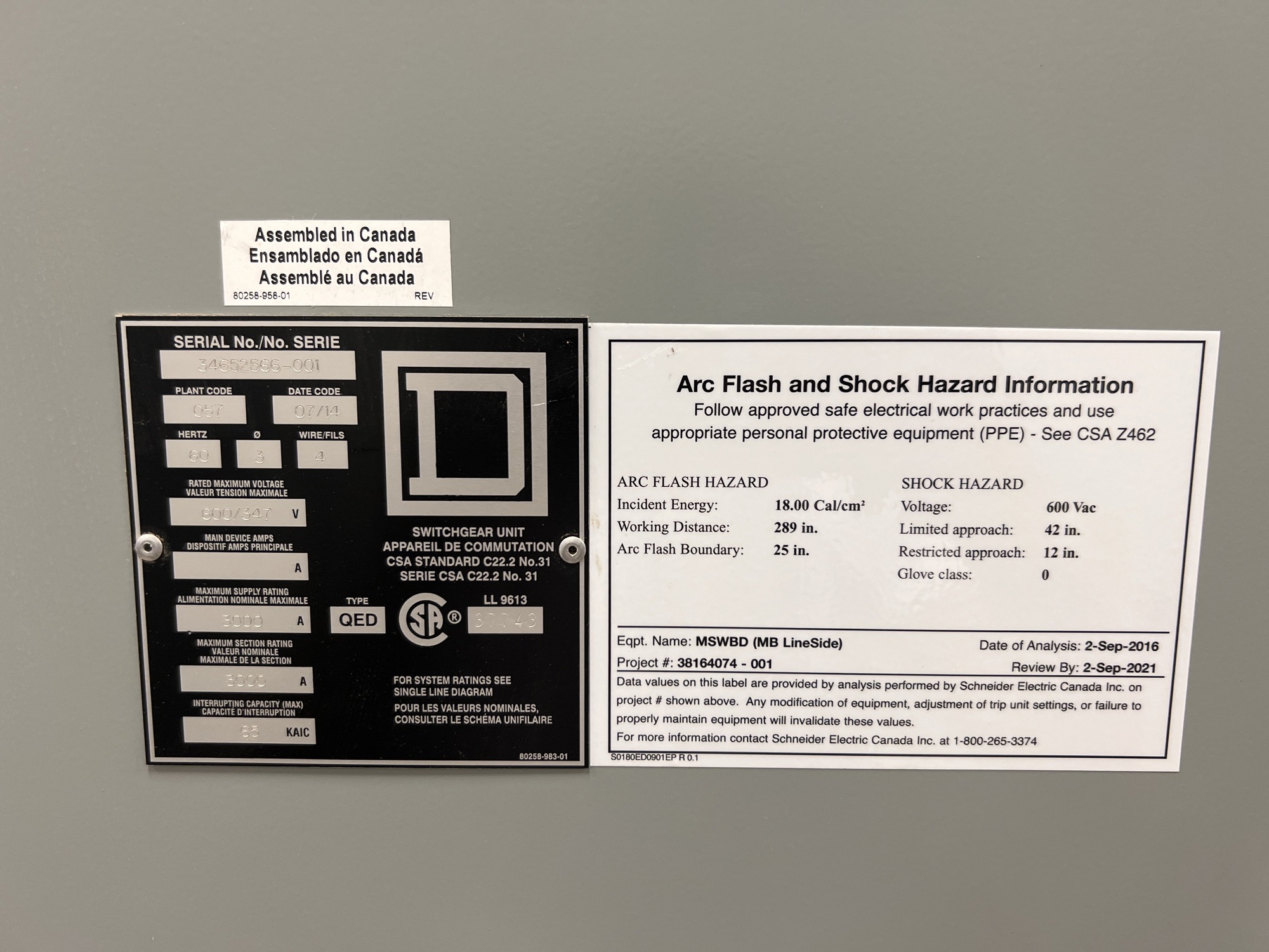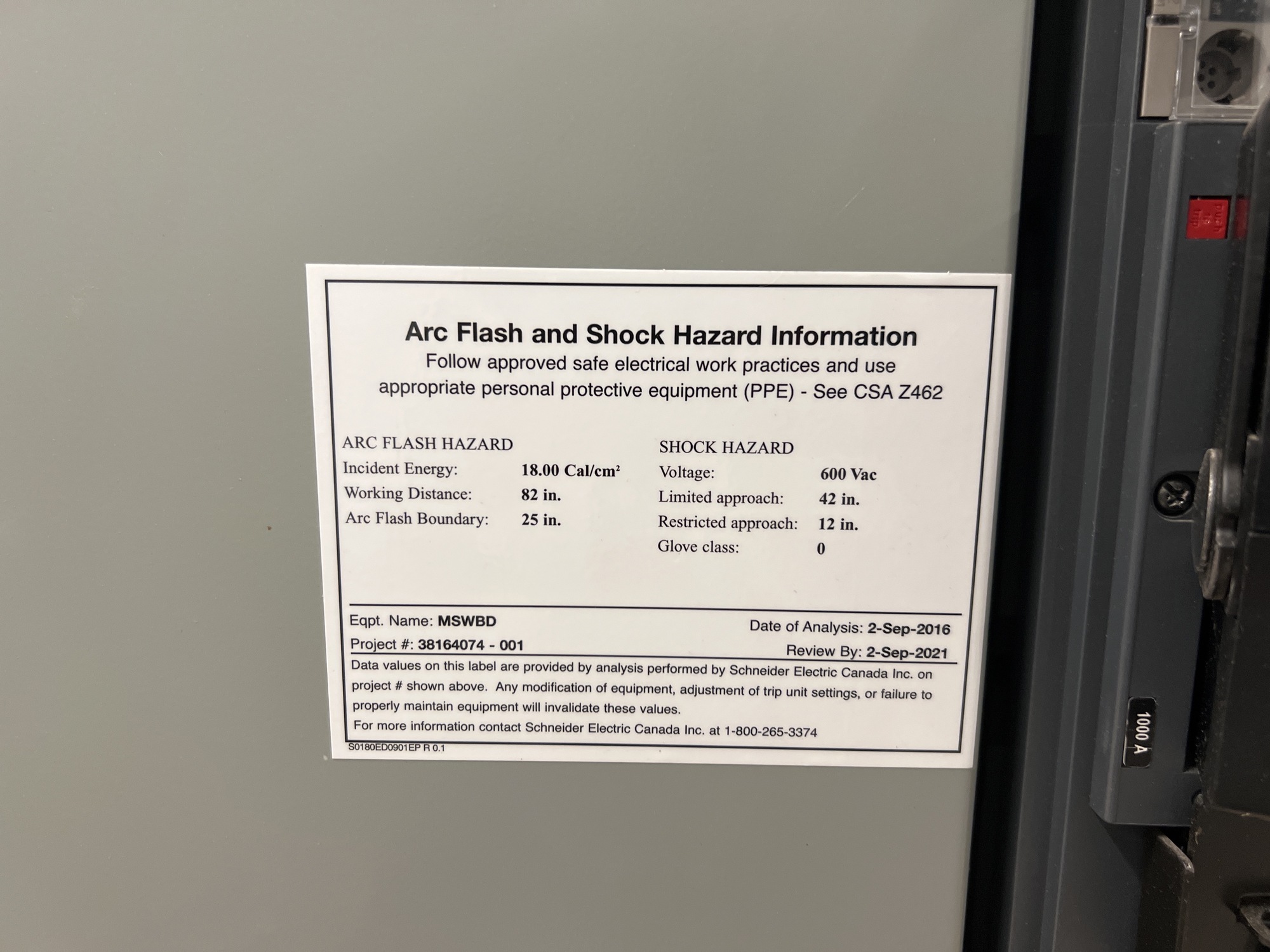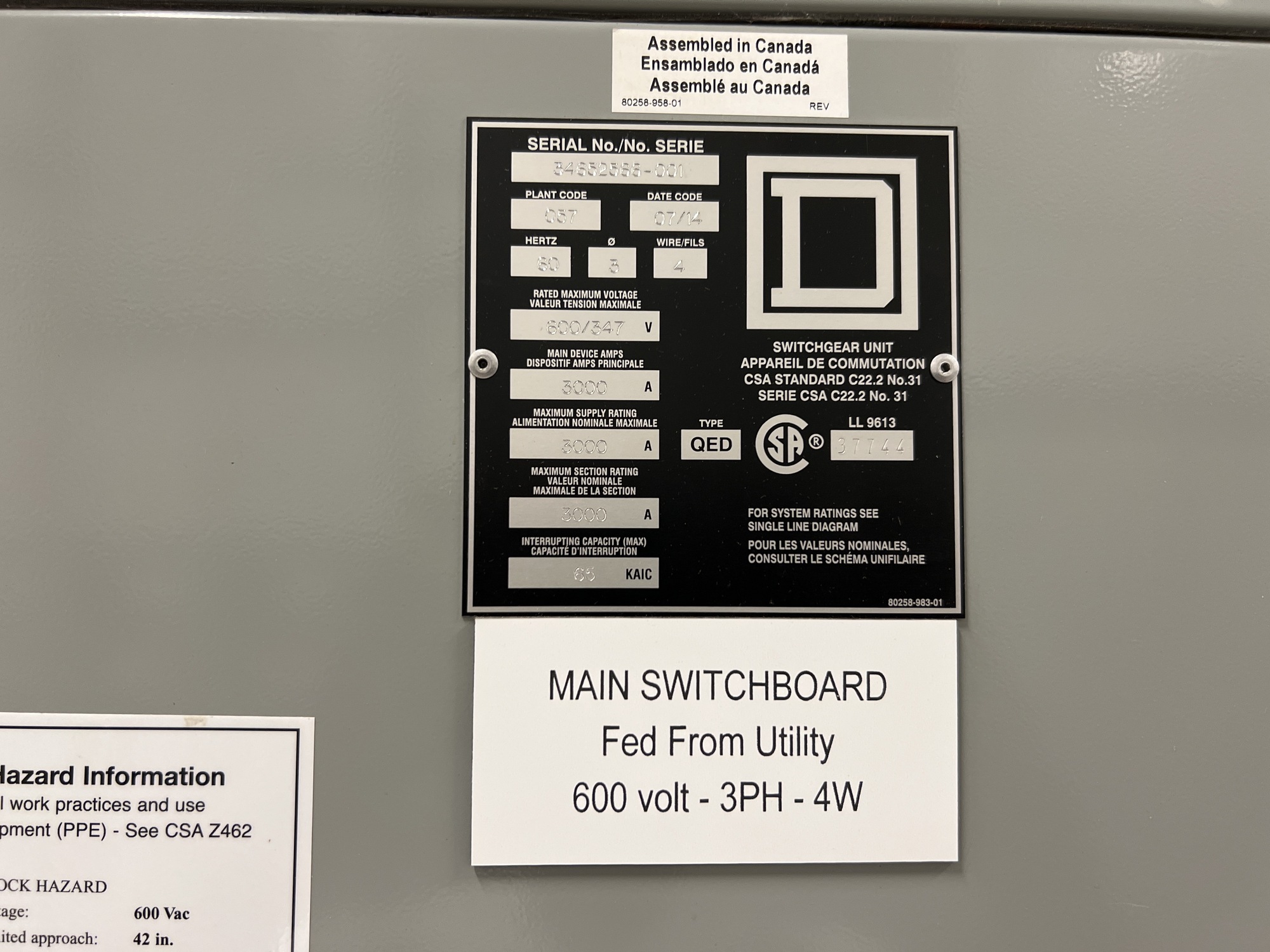 Main Switchboard Switchgear Unit Tag*