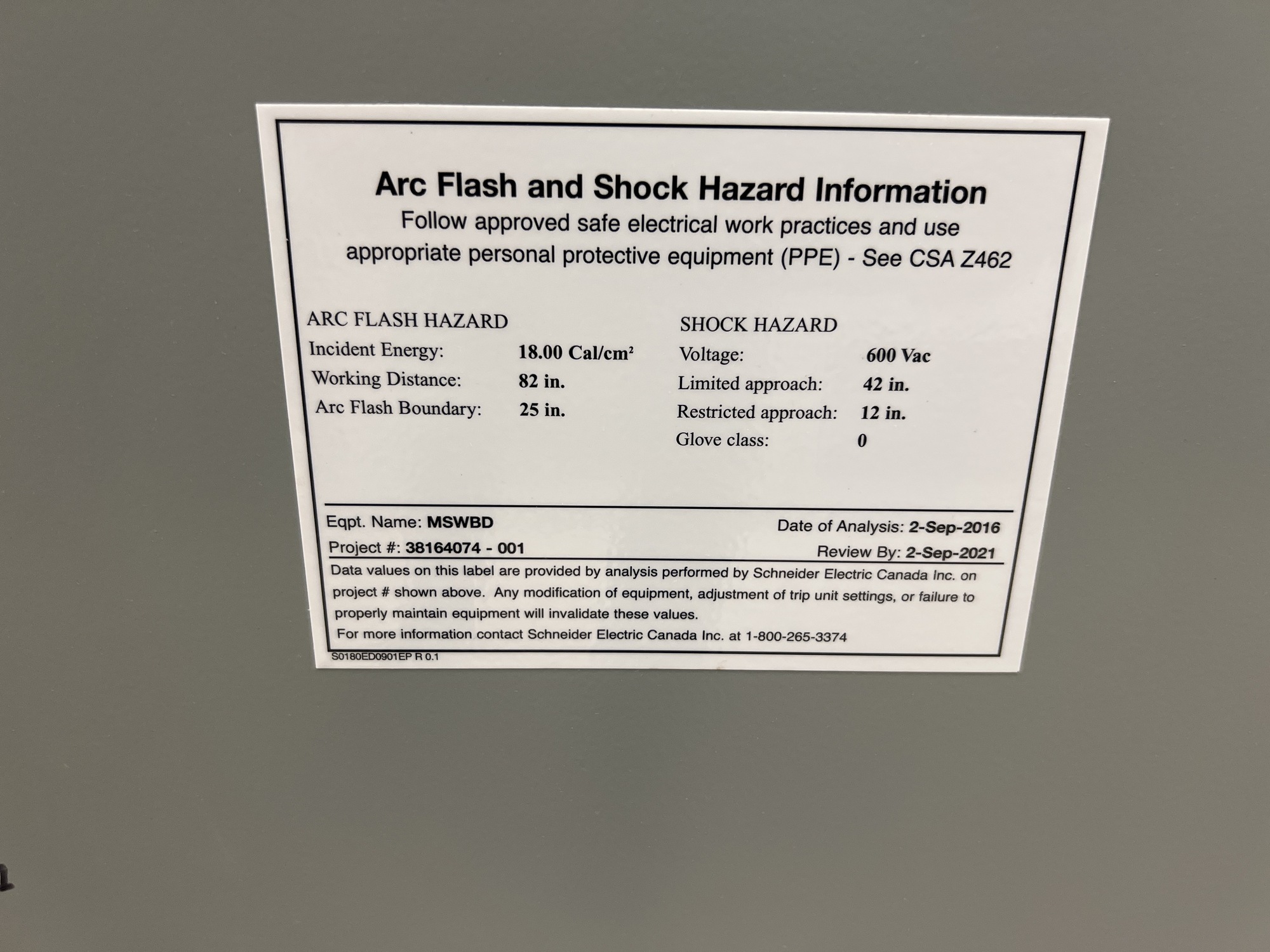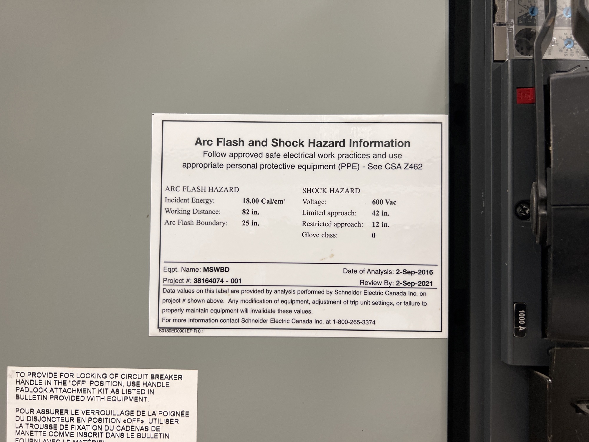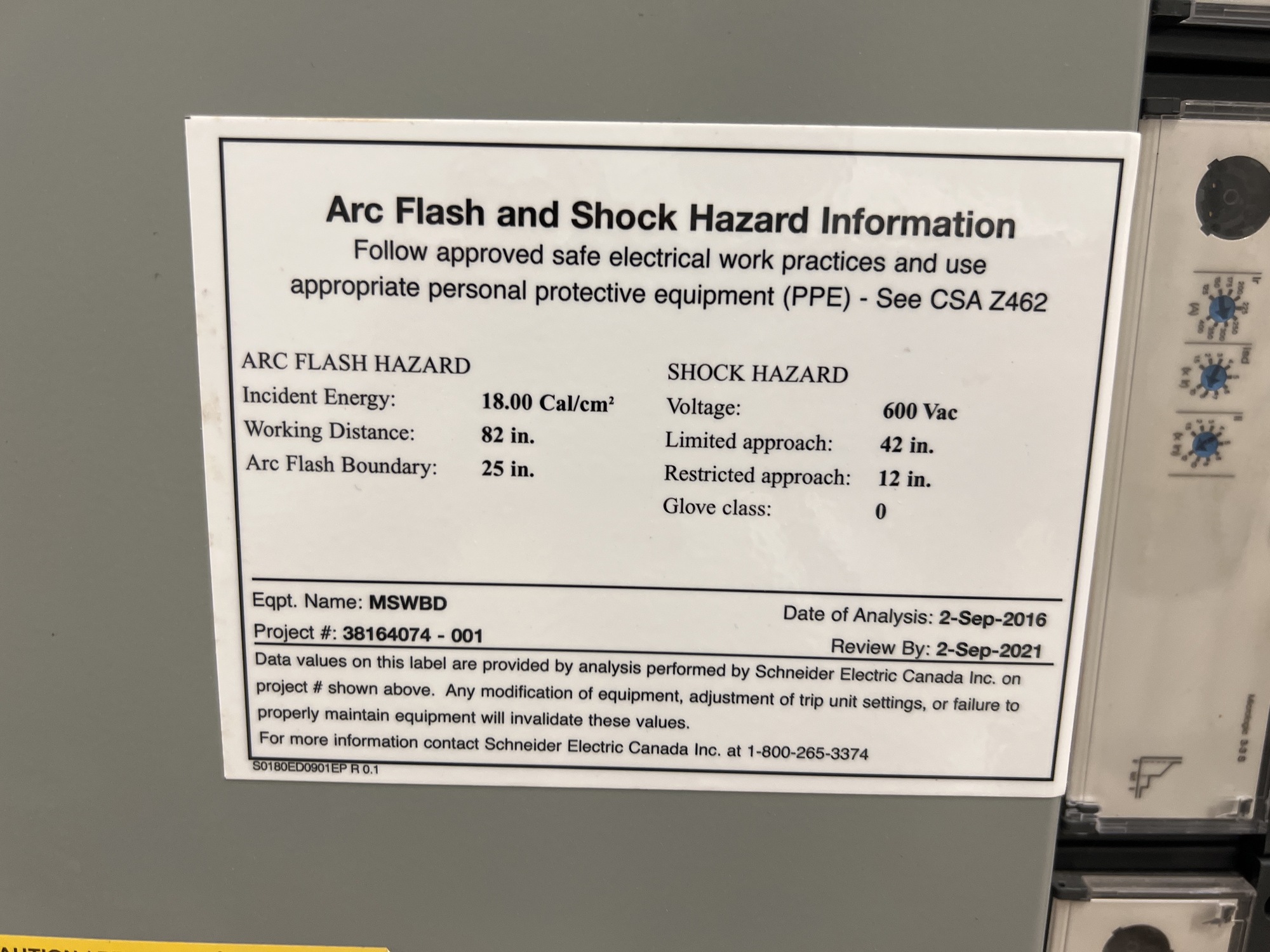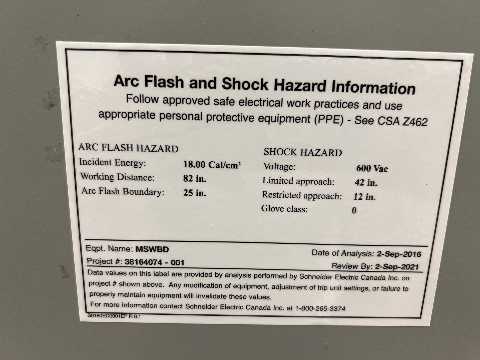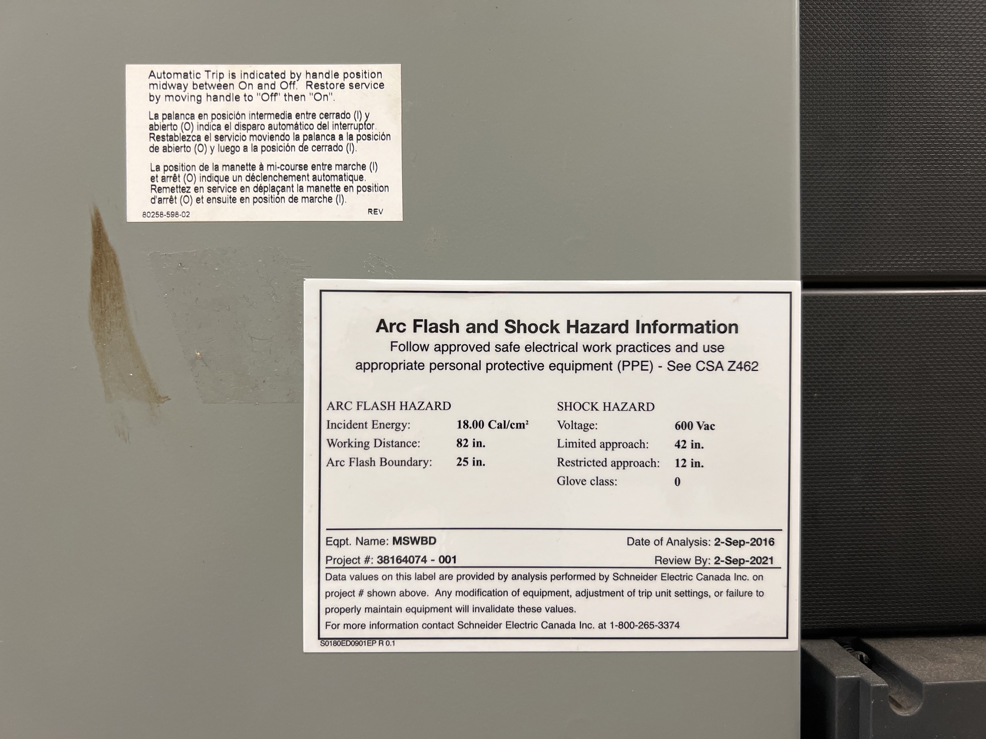 Main Switchboard Switchgear Unit Tag*