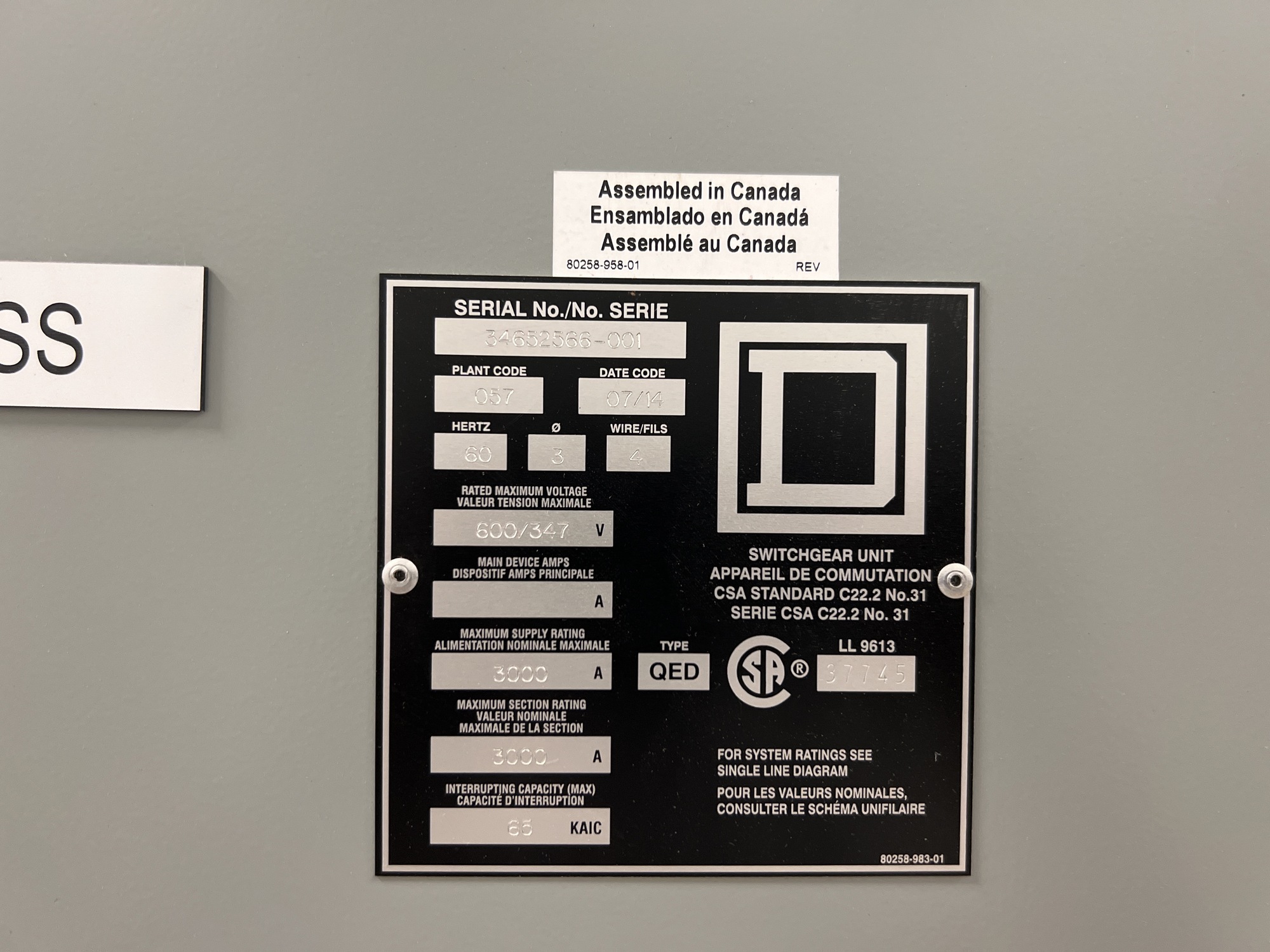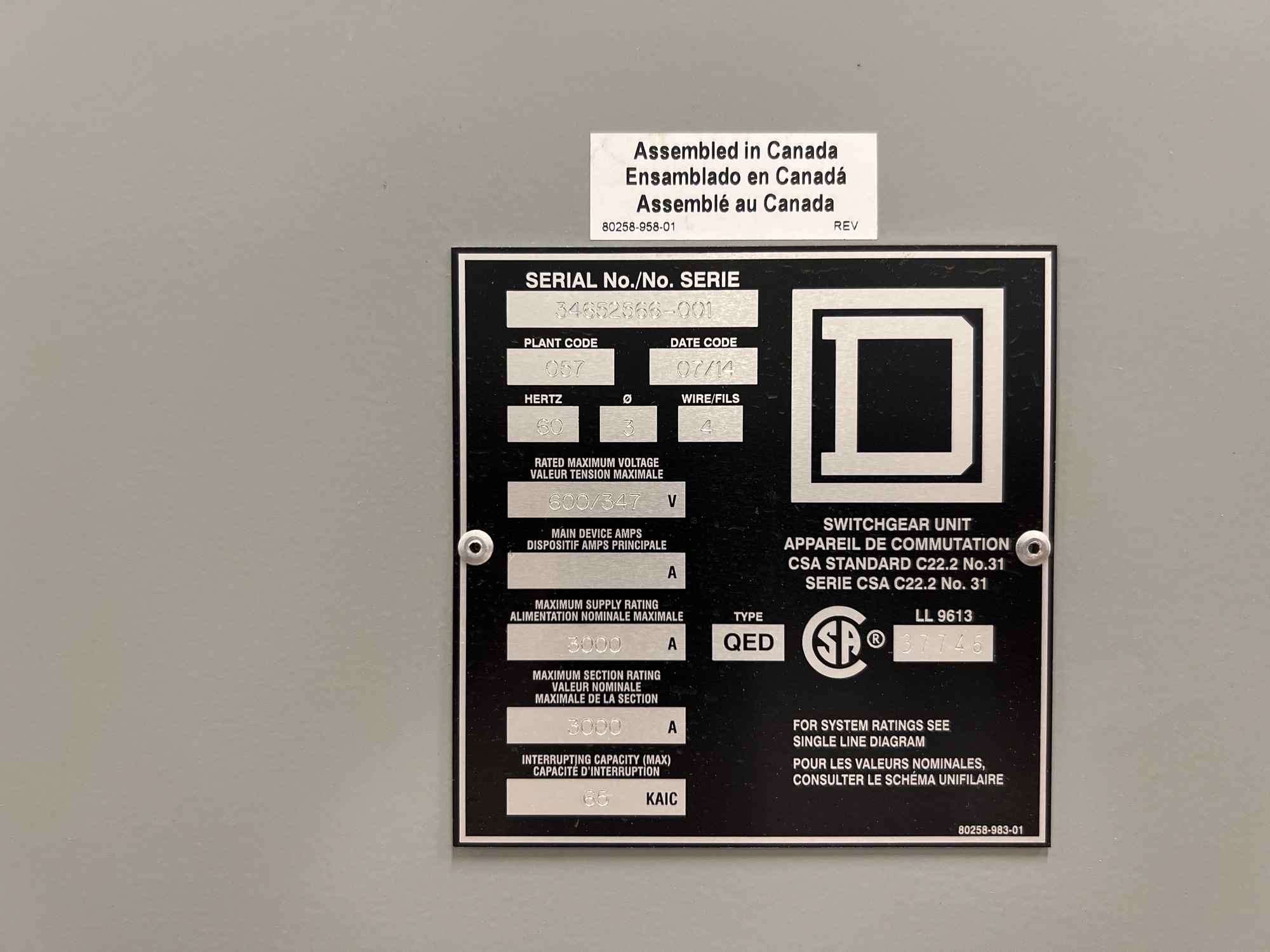 Rated Maximum Voltage: 600/347V