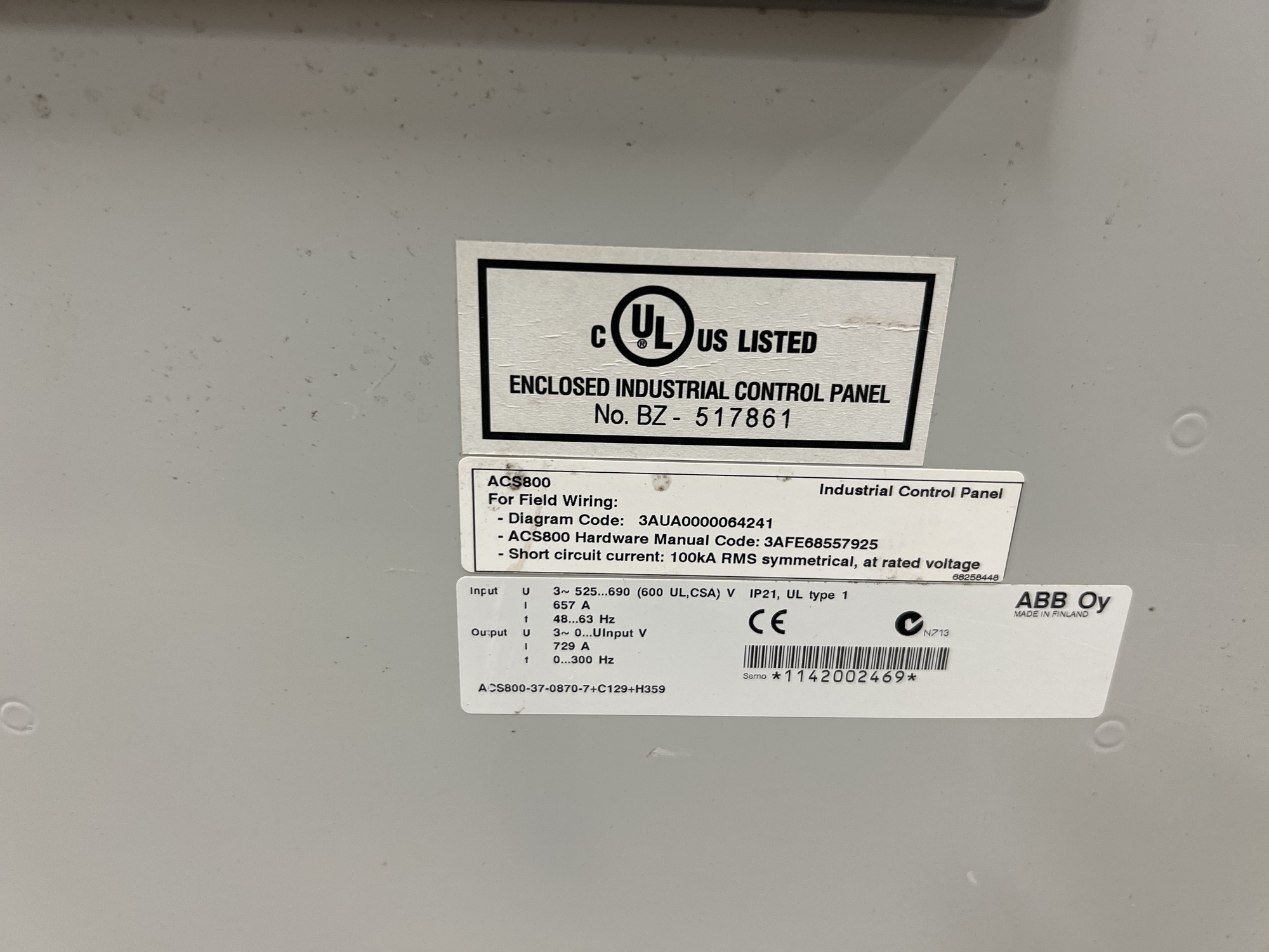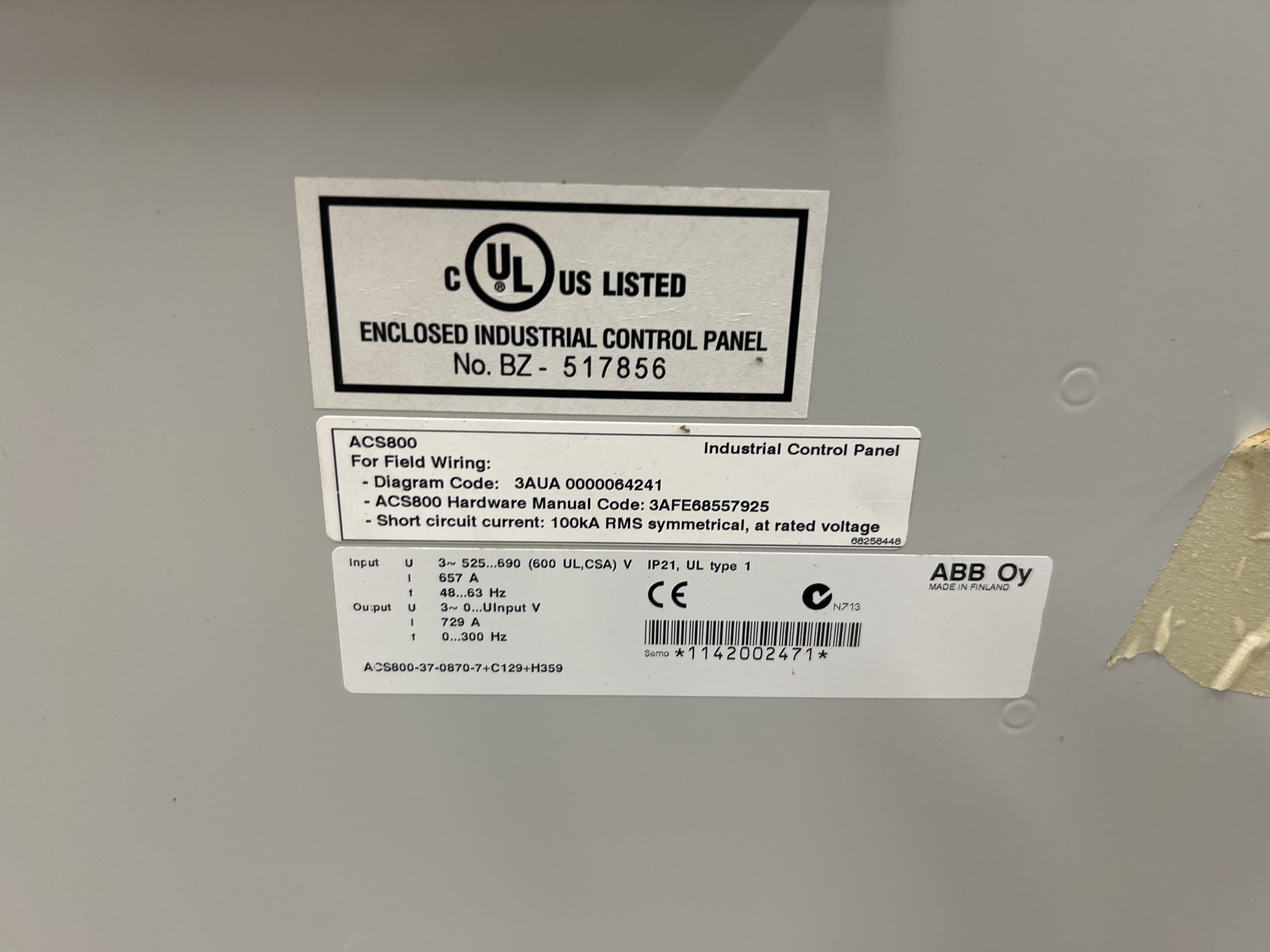 Cavern Facility PLC Control Panel Tag*