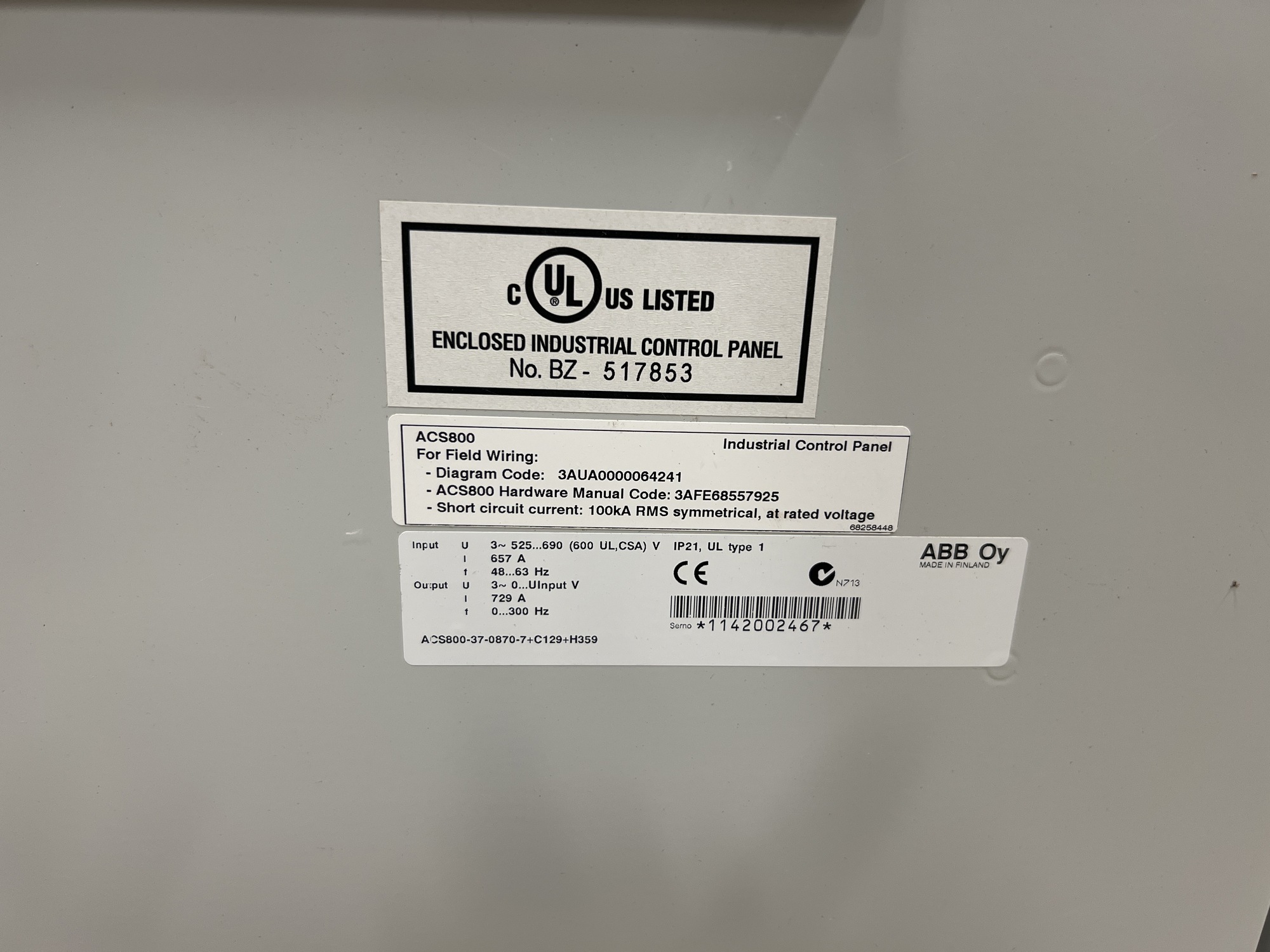 MCC Equipment - never commissioned