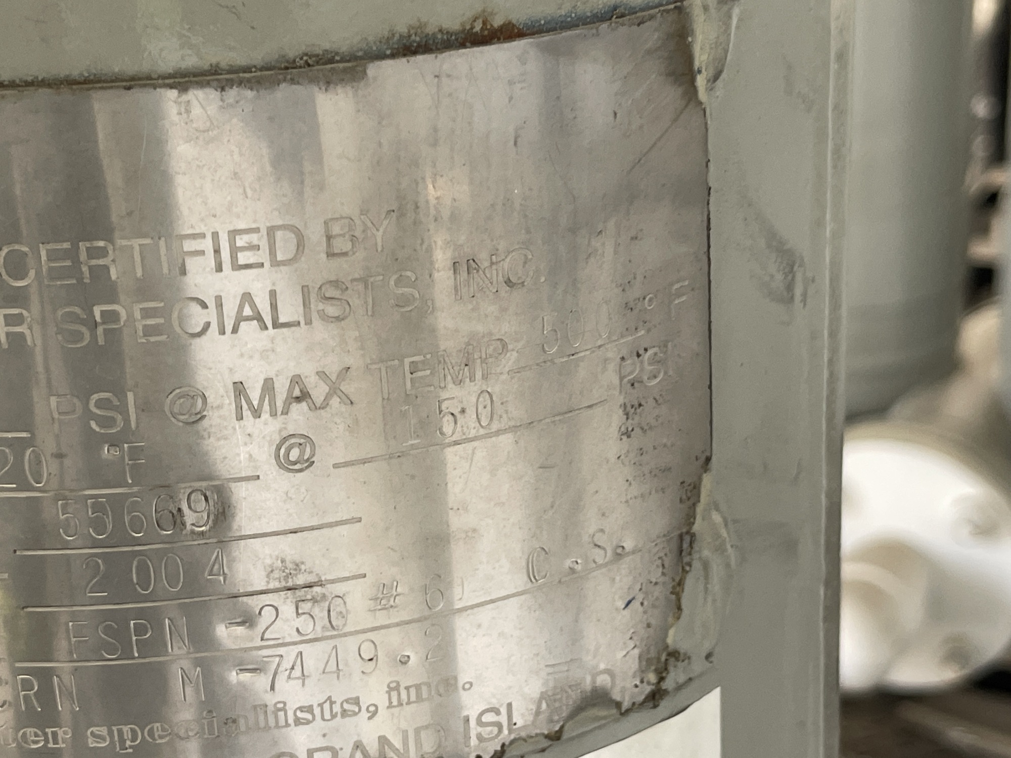 MAWP: 150 PSI at max temp 500 F
