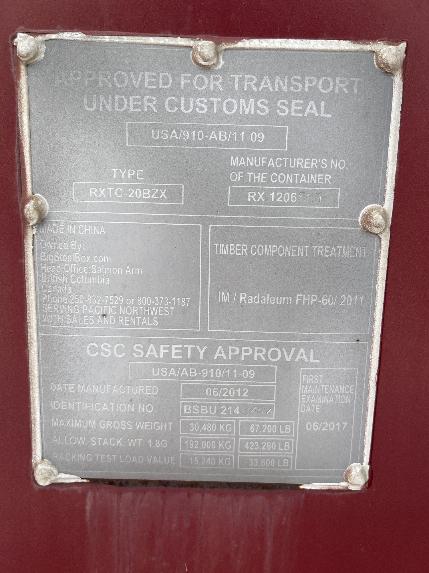 Racking Test Load Value: 33,600 lb
