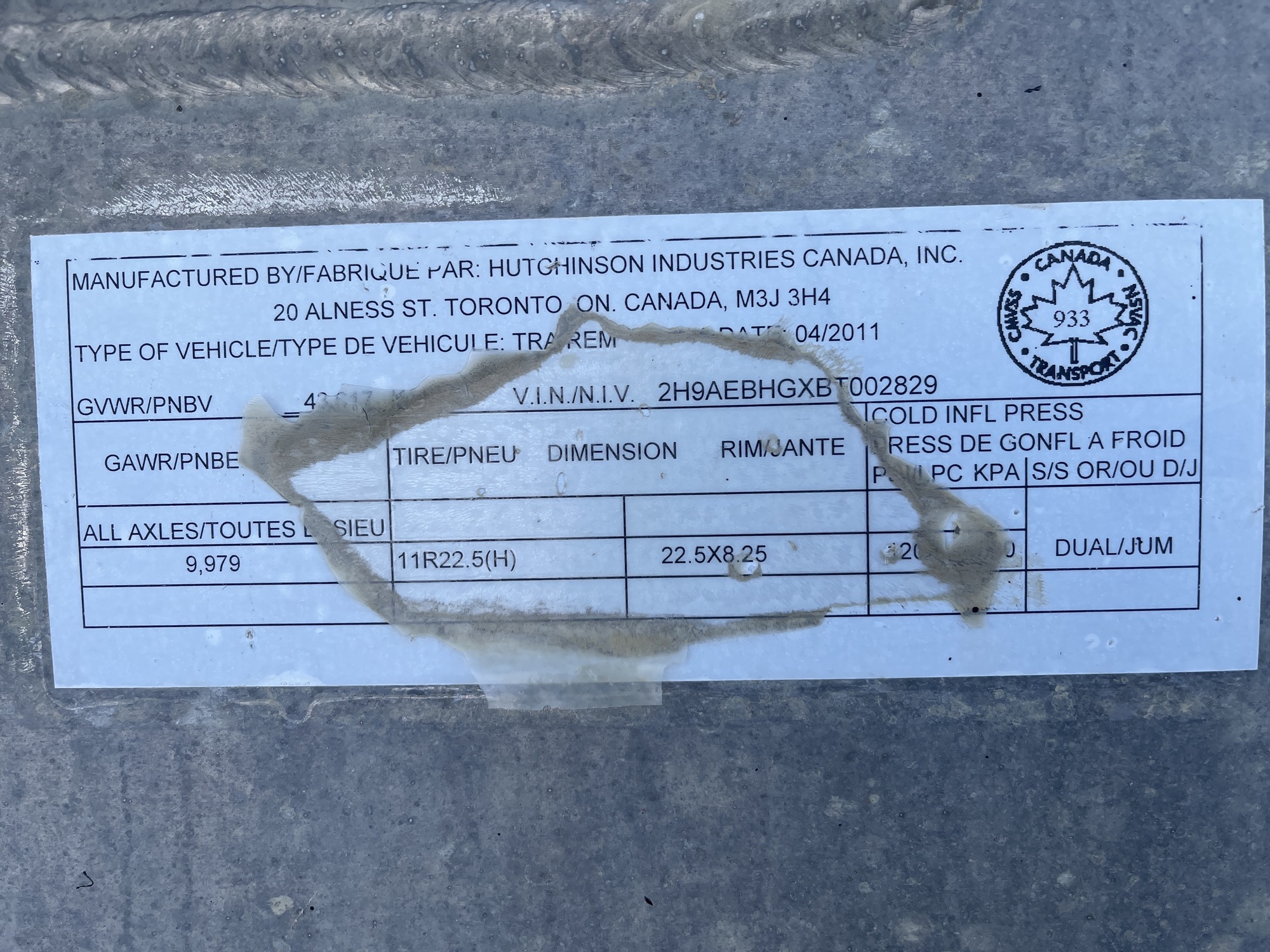 GAWR All Axels: 9,979 KG