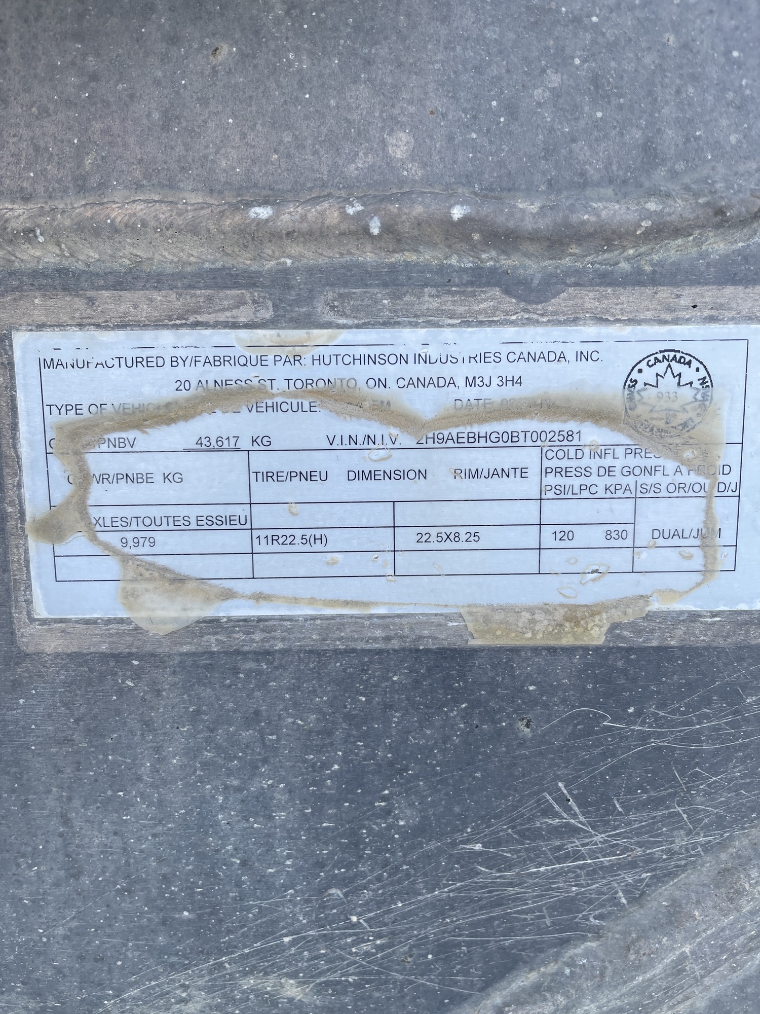 GAWR All Axels: 9,979 KG