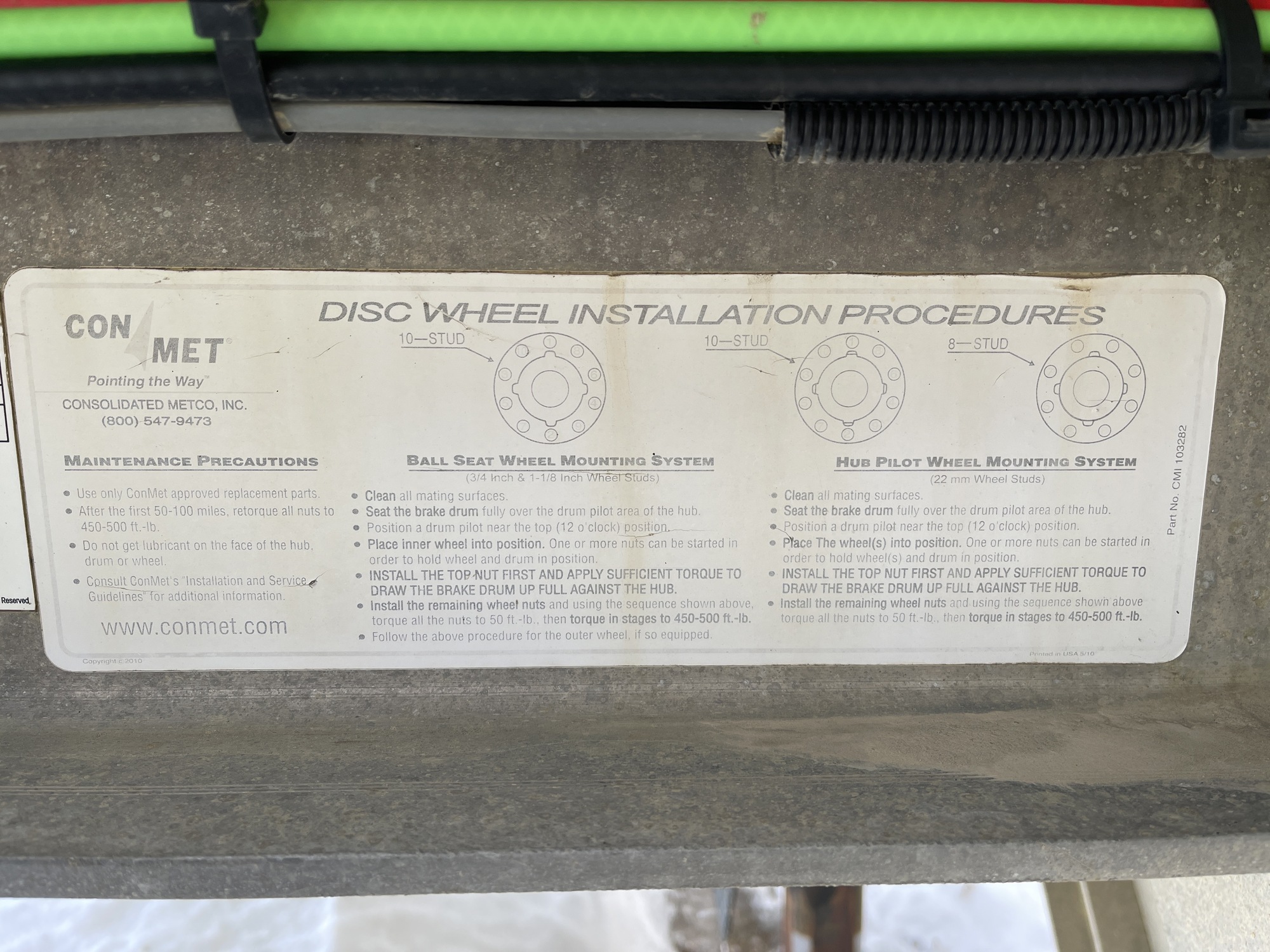 Cold Infl. Pressure: 120 PSI / 8230 KPA