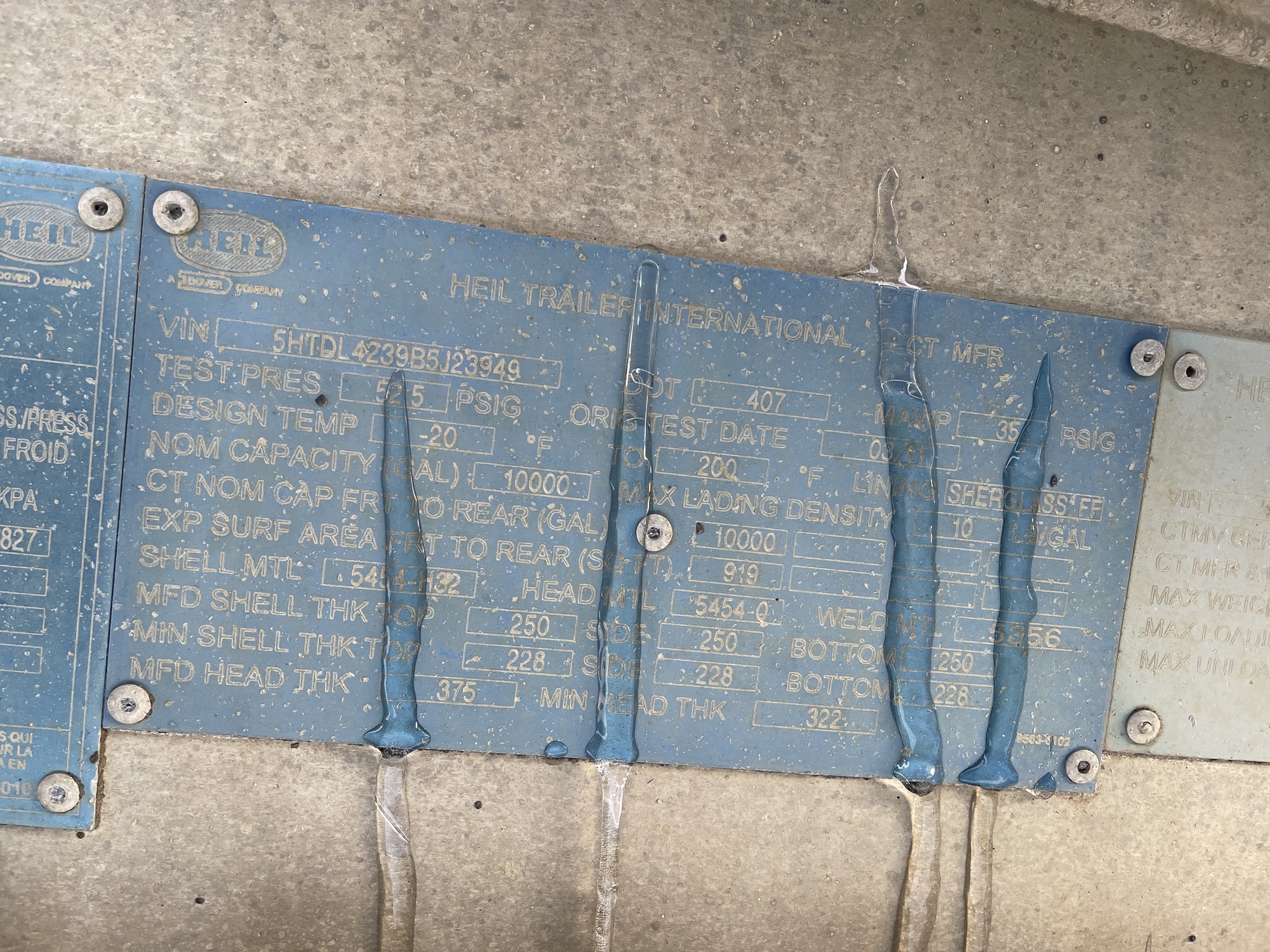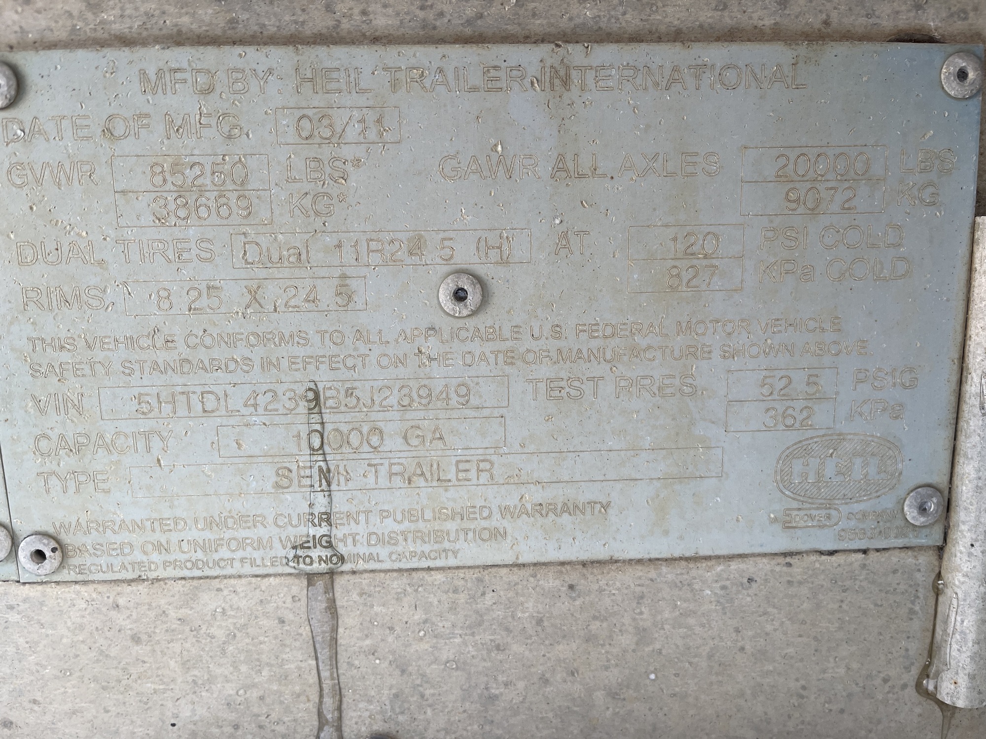 2011 10,000 USG Heil DOT 407 Tridem Trailer